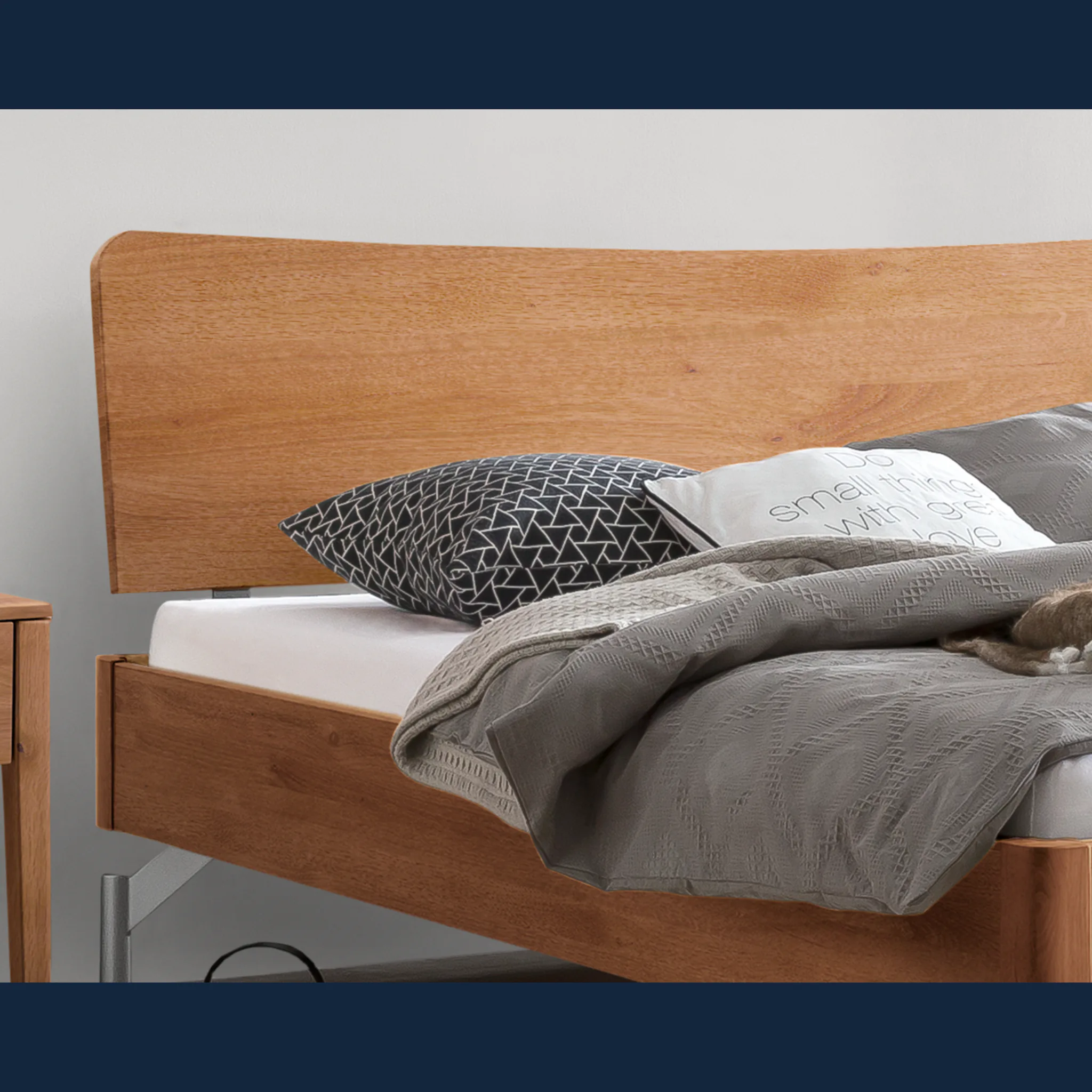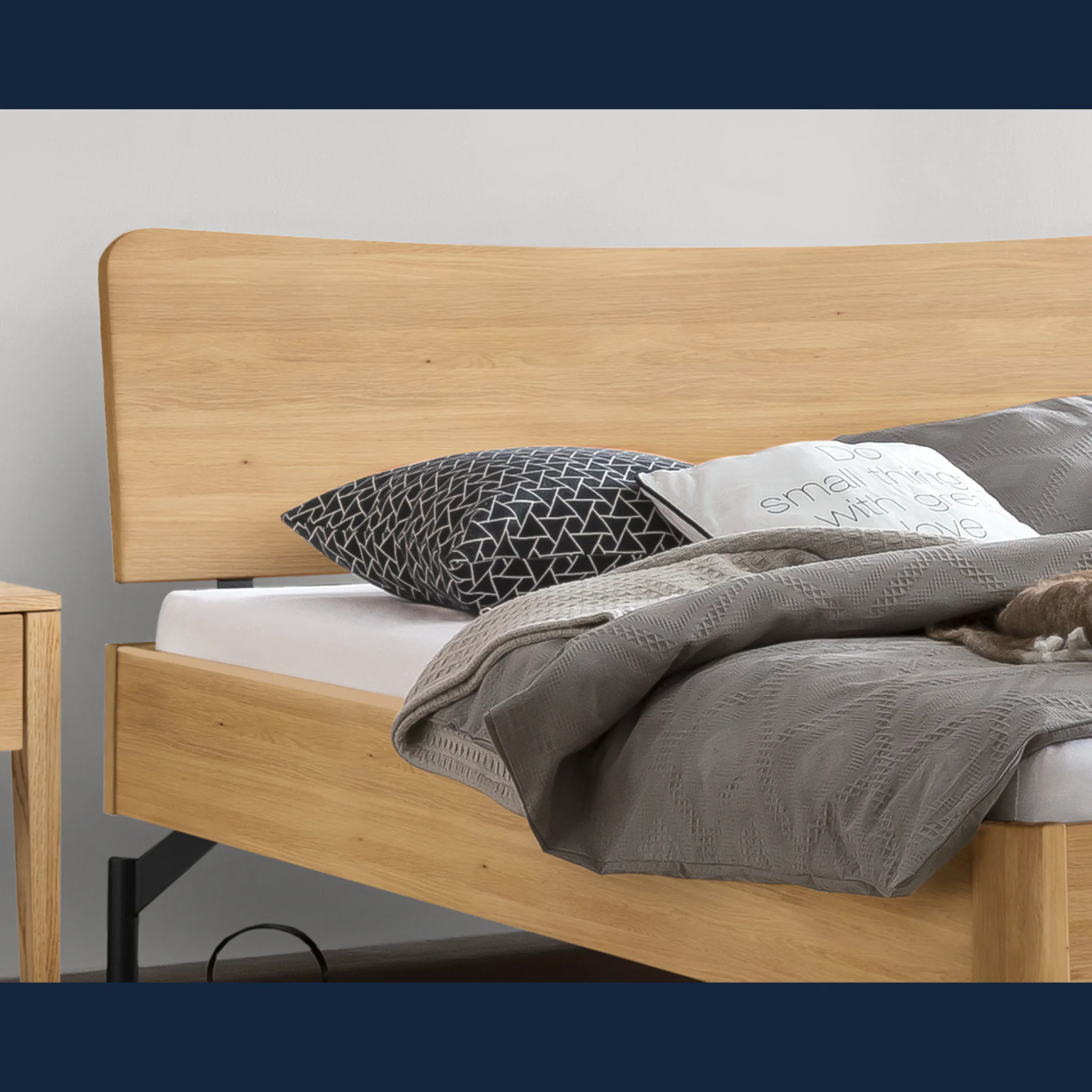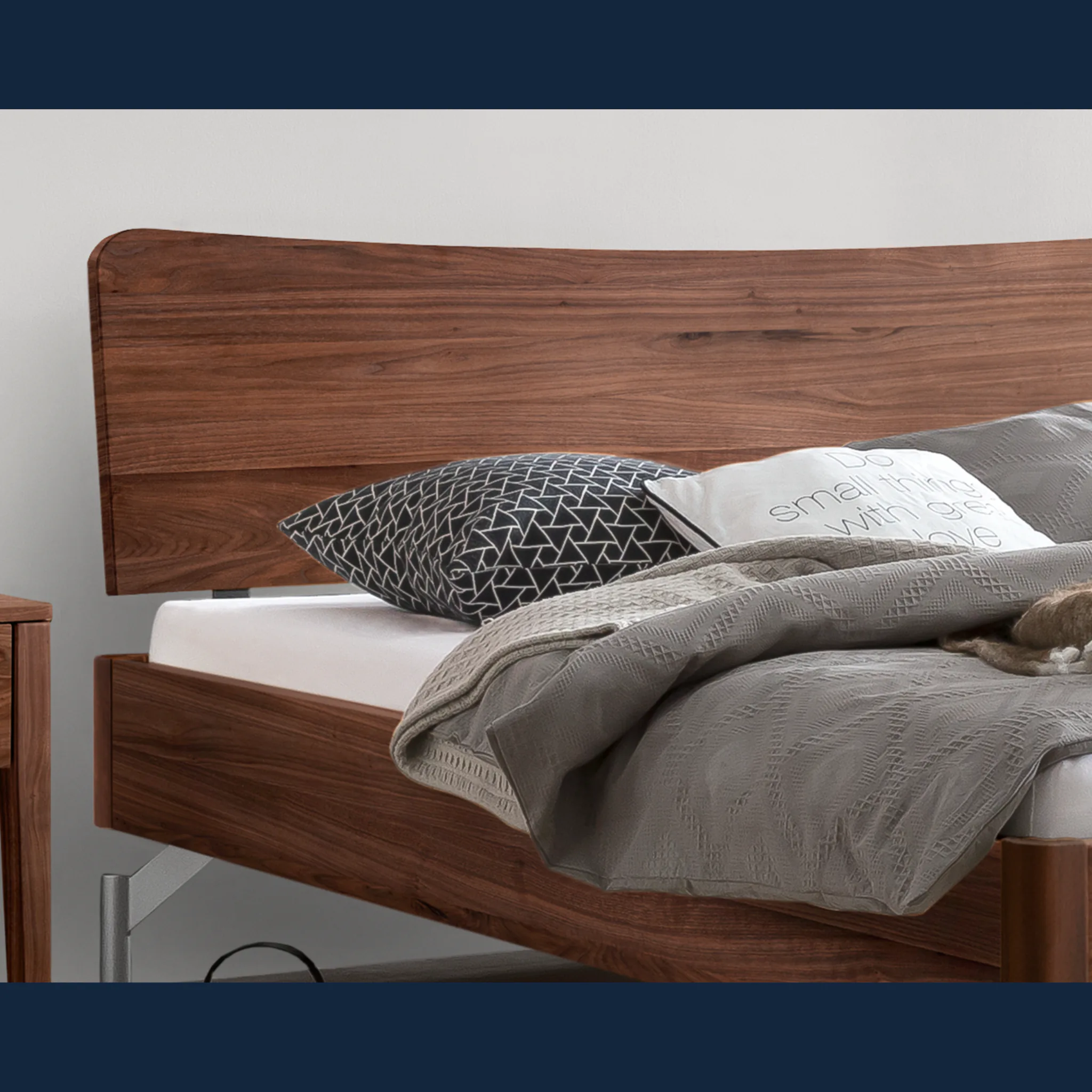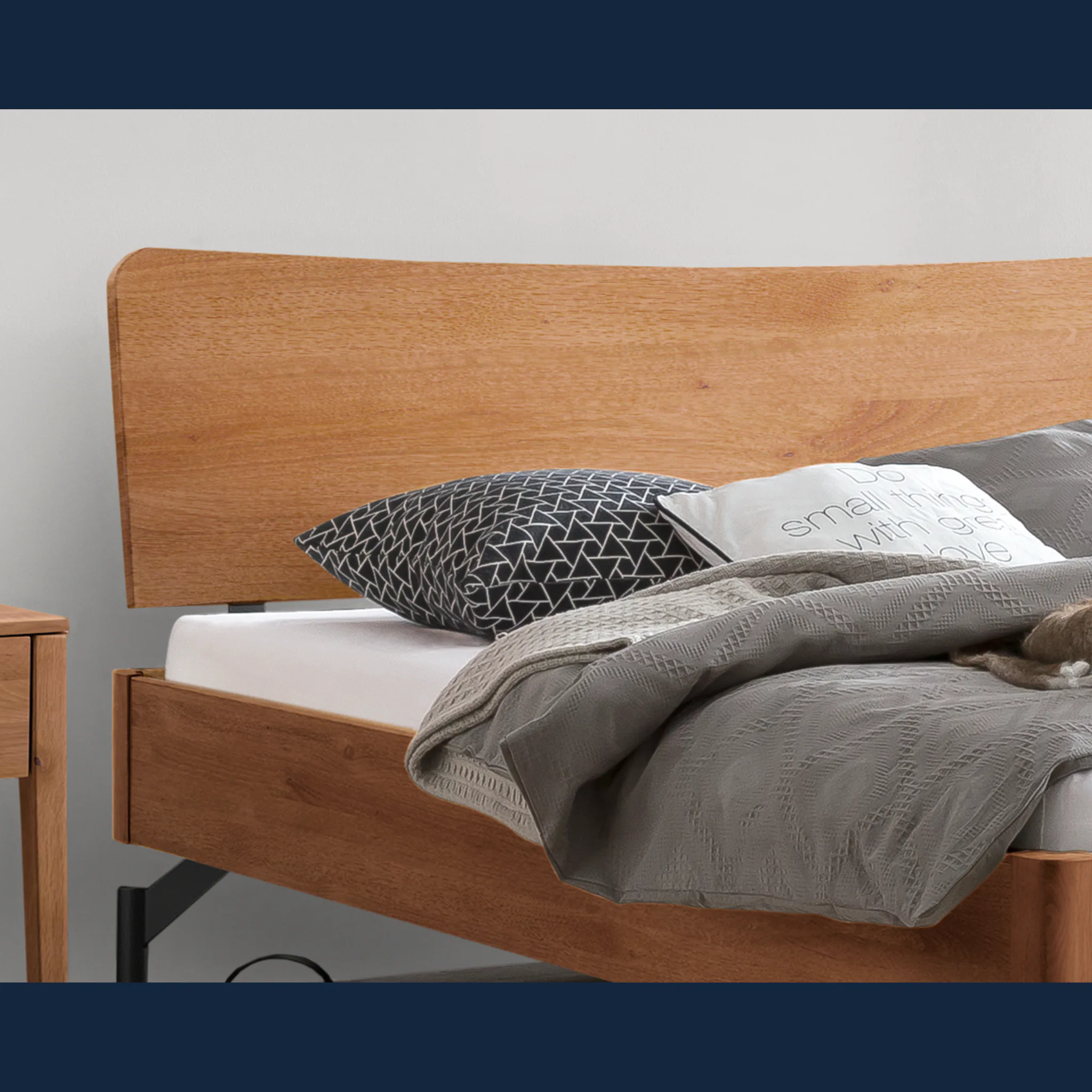 - Unterstreichen Sie Ihren Stil mit leiser Eleganz: sanfte Radien an Kopfteil und Rahmen schaffen Harmonie.