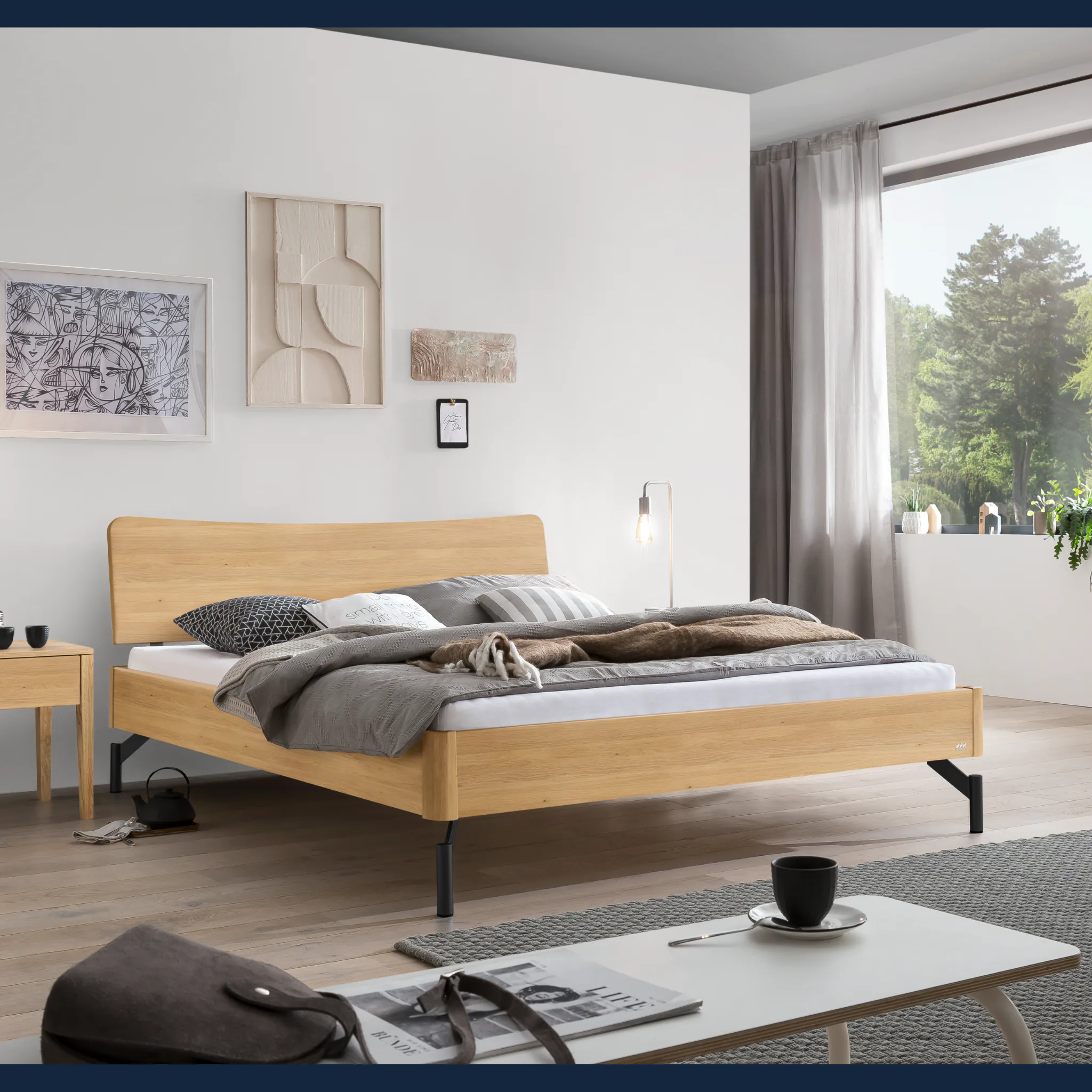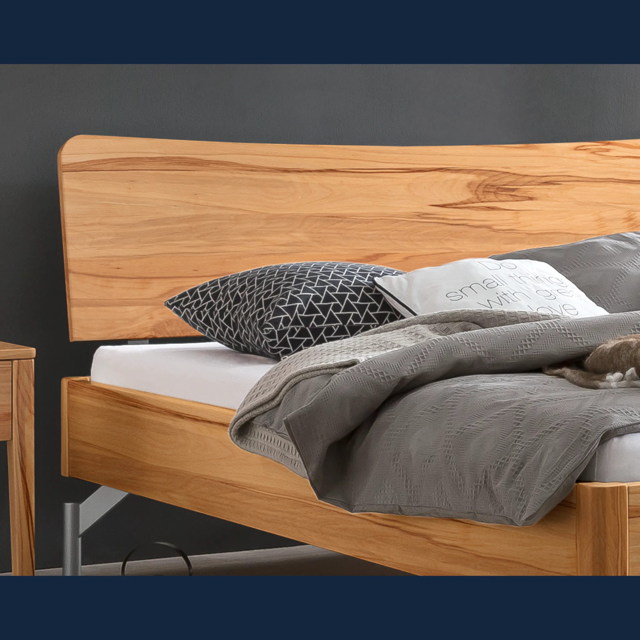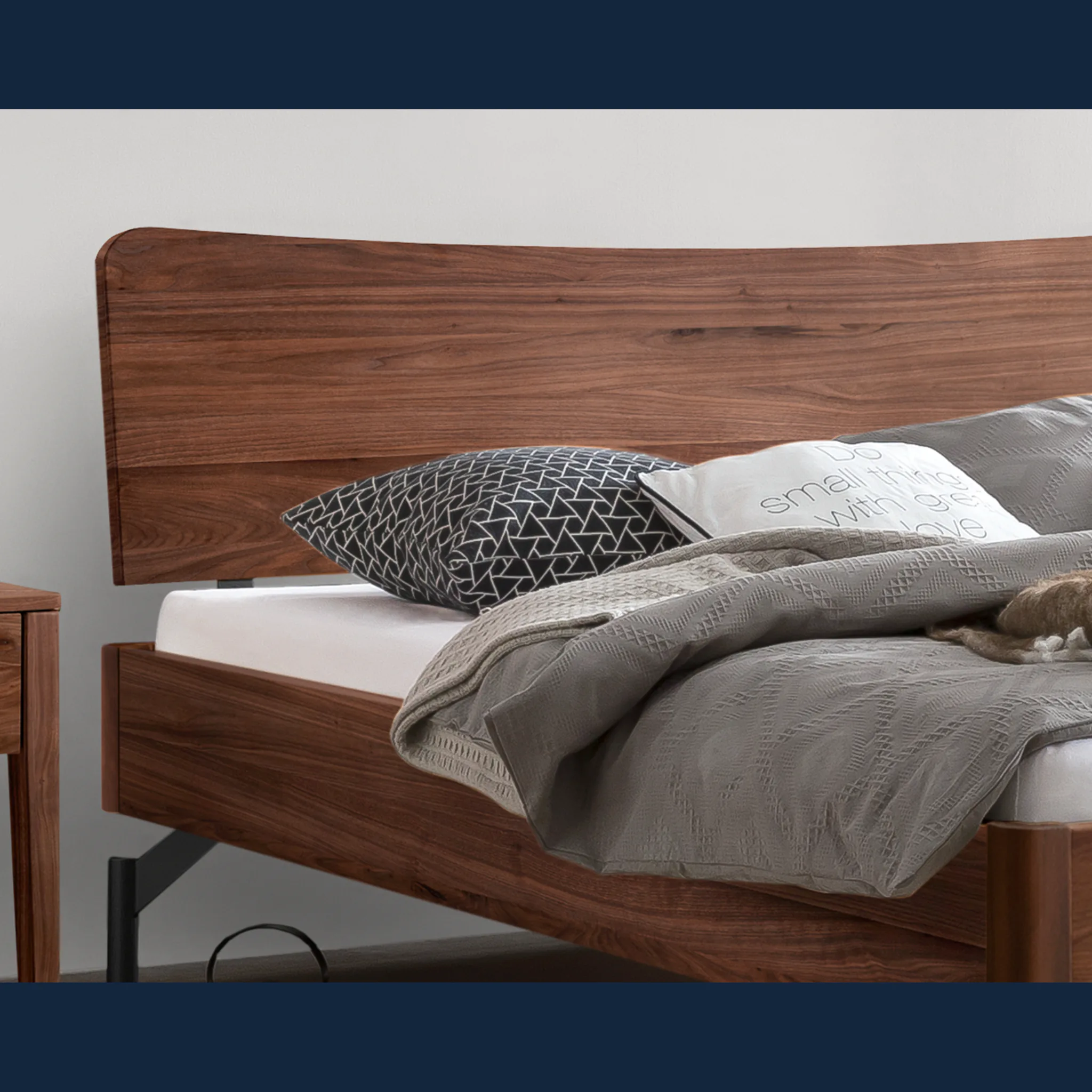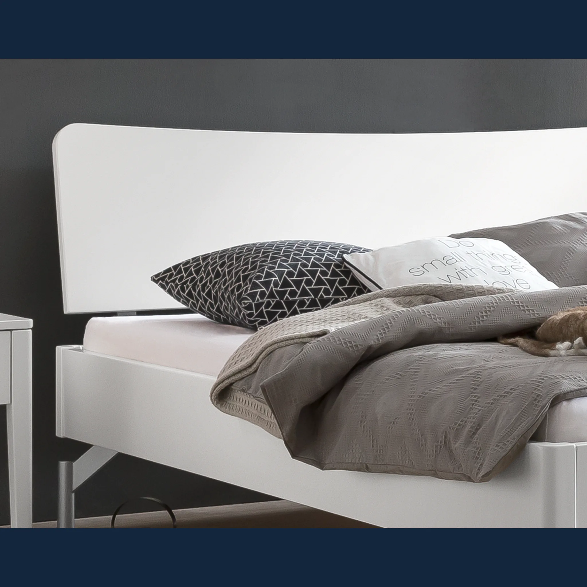 - Unterstreichen Sie Ihren Stil mit leiser Eleganz: sanfte Radien an Kopfteil und Rahmen schaffen Harmonie.