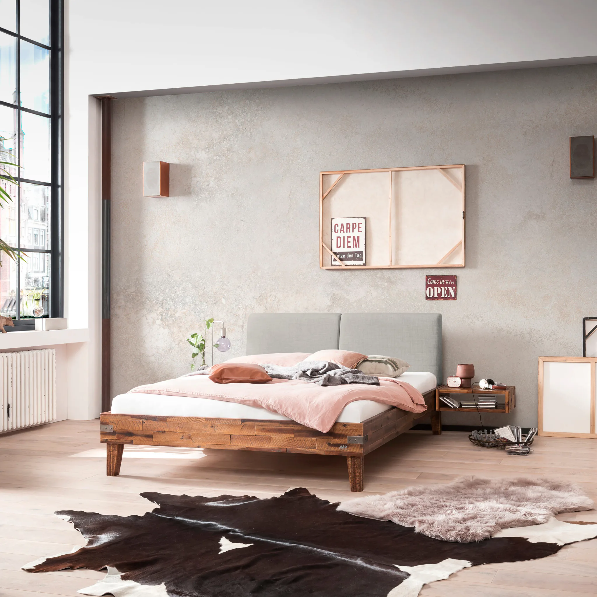 Unterstreichen Sie Ihren Stil mit leiser Eleganz. Alino aus der Factory-Line zeigt industriell geprägte Ruhe mit klaren Linien und authentischer Holzstruktur. Massives, hochwertig verarbeitetes Akazienholz in Vintage brown oder Vintage grey wirkt warm und bleibt dank Lackierung pflegefreundlich. Das weich gepolsterte Kopfteil trägt einen robusten, pflegeleichten Bezug in Pepe grey und bietet eine angenehme Anlehnfläche. Eine angenehm tiefe Einlegetiefe bildet die verlässliche Basis für gängige Lattenroste und Matratzen. So entsteht ein ruhiger Mittelpunkt für entspannte Abende.