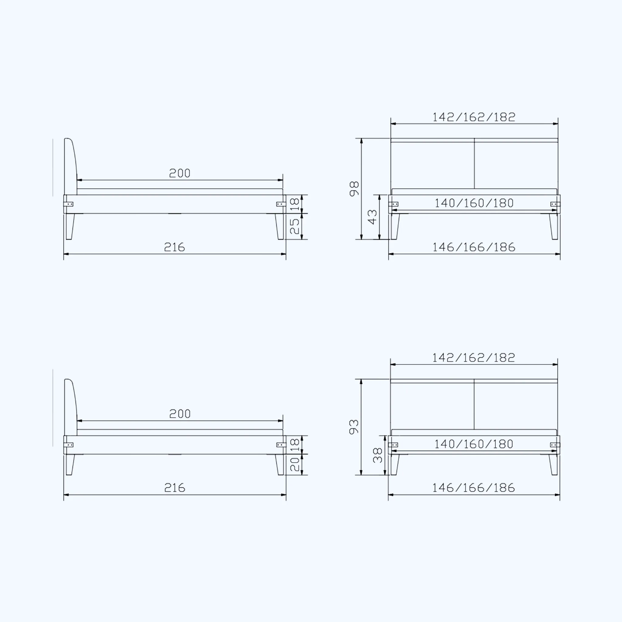 | Liegefläche | 140×200 cm, 160×200 cm, 180×200 cm |