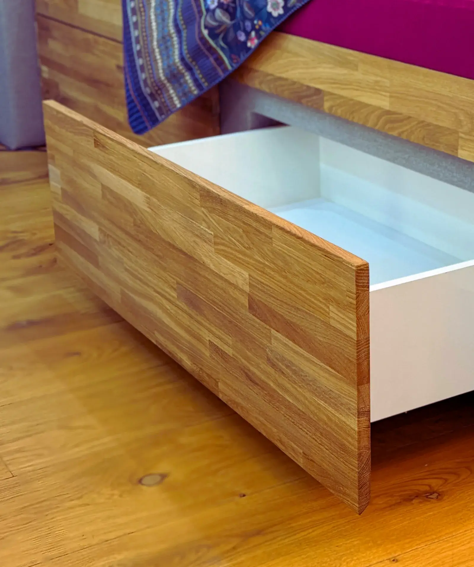 Verfügbar in 2 Holzfarbe und 4 Liegefläche