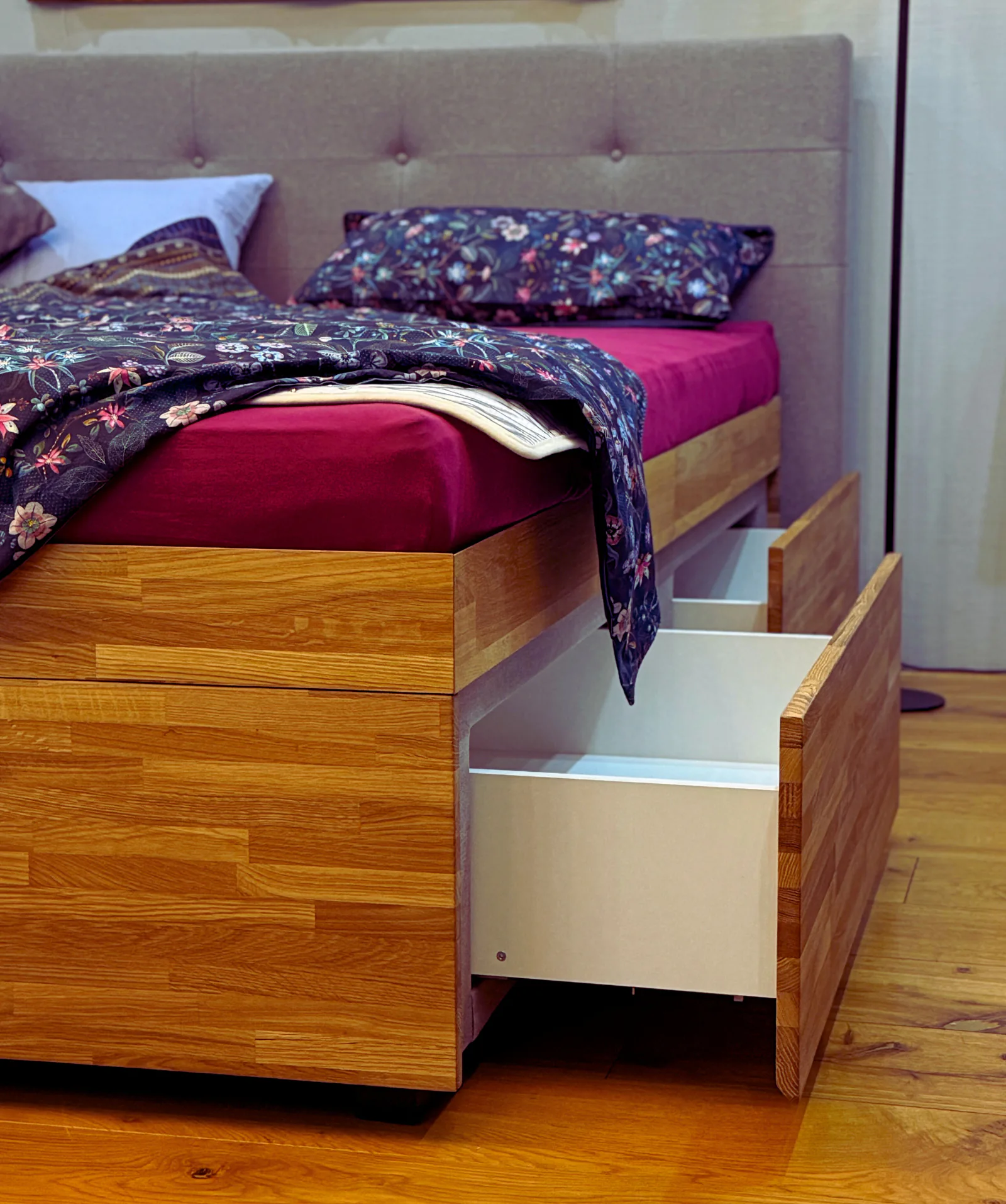 AQUARIBIK Massivholz Wasserbett mit Stauraum – Ausstellungsstück