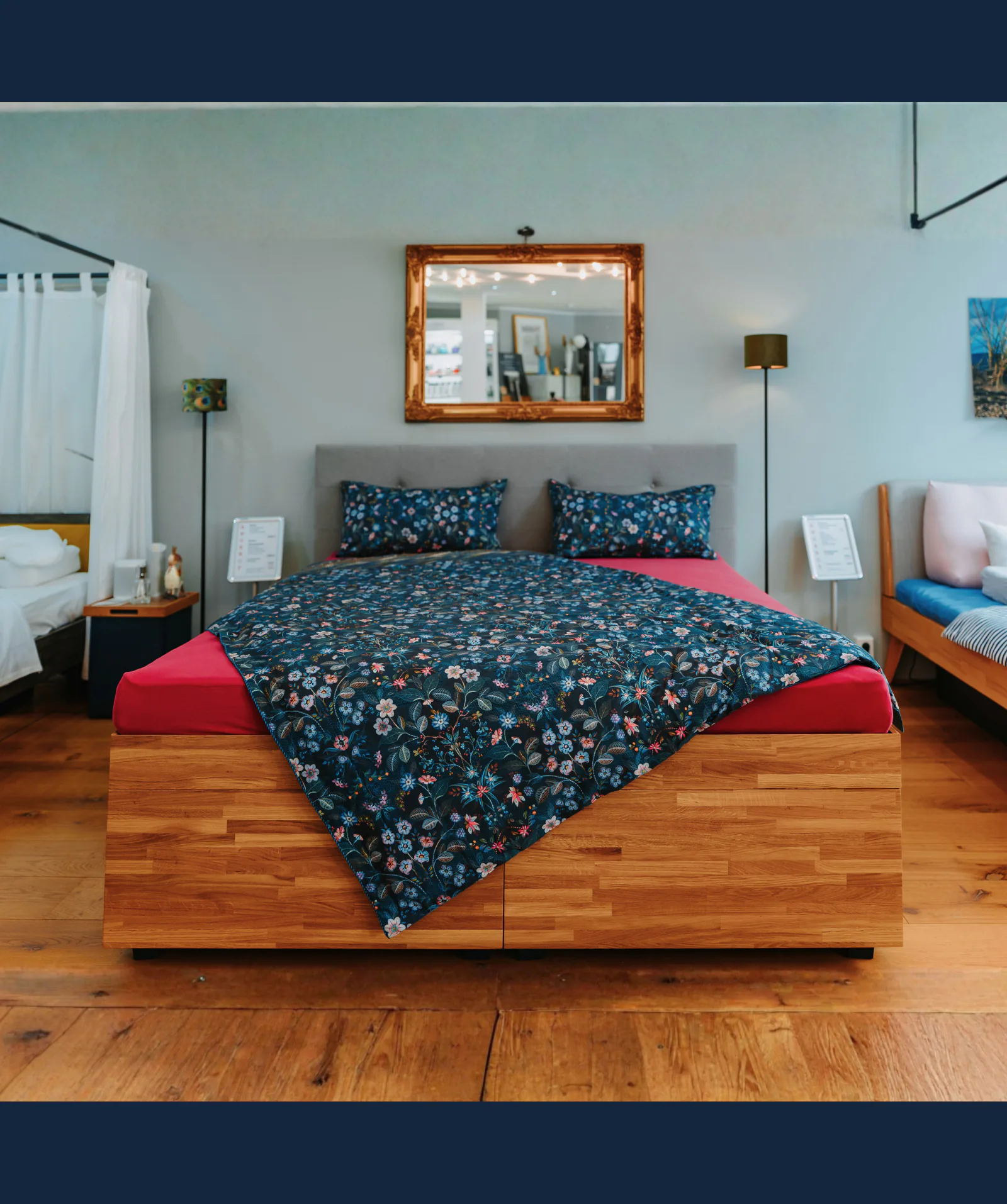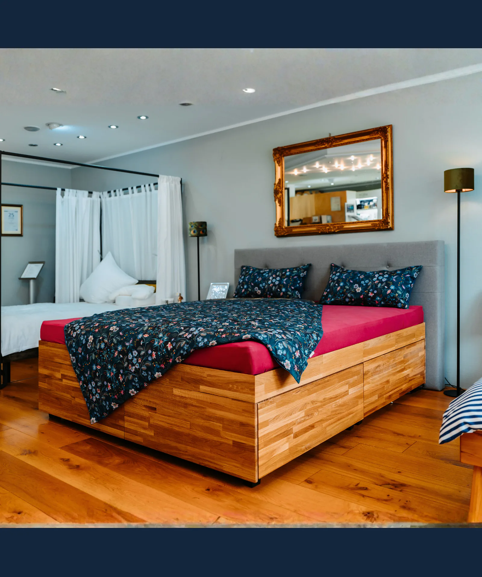 Wir laden Sie herzlich ein, unser Fachgeschäft zu besuchen, das Wasserbett persönlich zu testen und sich individuell beraten zu lassen. Genießen Sie dabei eine frisch zubereitete Tasse Kaffee in ruhiger Atmosphäre. Auf Wunsch übernehmen wir auch den fachgerechten Aufbau des Bettes bei Ihnen zu Hause – die Montage kostet 180 Euro. Zusätzlich besteht die Möglichkeit, den Kauf bequem in Raten zu bezahlen. Wir freuen uns darauf, Sie bei uns begrüßen zu dürfen.
