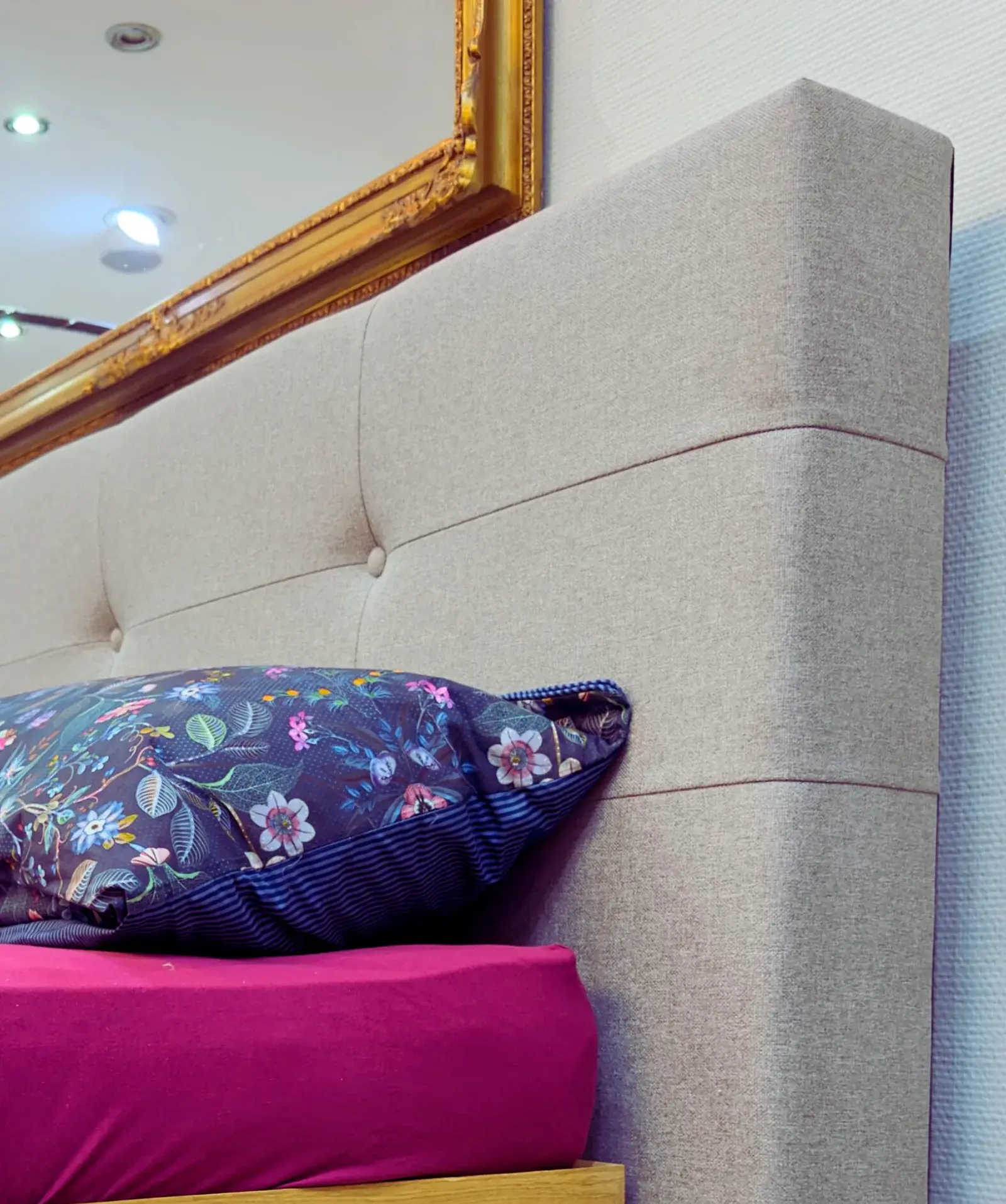 Im Inneren des Bettes befindet sich ein komplettes Softside Wasserbett 180×200 im Dual-System mit zwei stark beruhigten Wasserkern-Kammern. Die reduzierte Bewegungsübertragung sorgt für ruhigen, gleichmäßigen Liegekomfort – ideal auch für Paare mit unterschiedlichen Schlafgewohnheiten. Splitplatte und Schaumteile mit jeweils etwa 11 cm Höhe schaffen eine stabile Liegefläche. Die geteilte Frottee Auflage ist hygienisch, pflegeleicht und leicht abnehmbar. So entsteht ein sofort einsatzbereites Wasserbett-System mit hohem Schlafkomfort.Beratung, Probeliegen, Montage & flexible Bezahlung