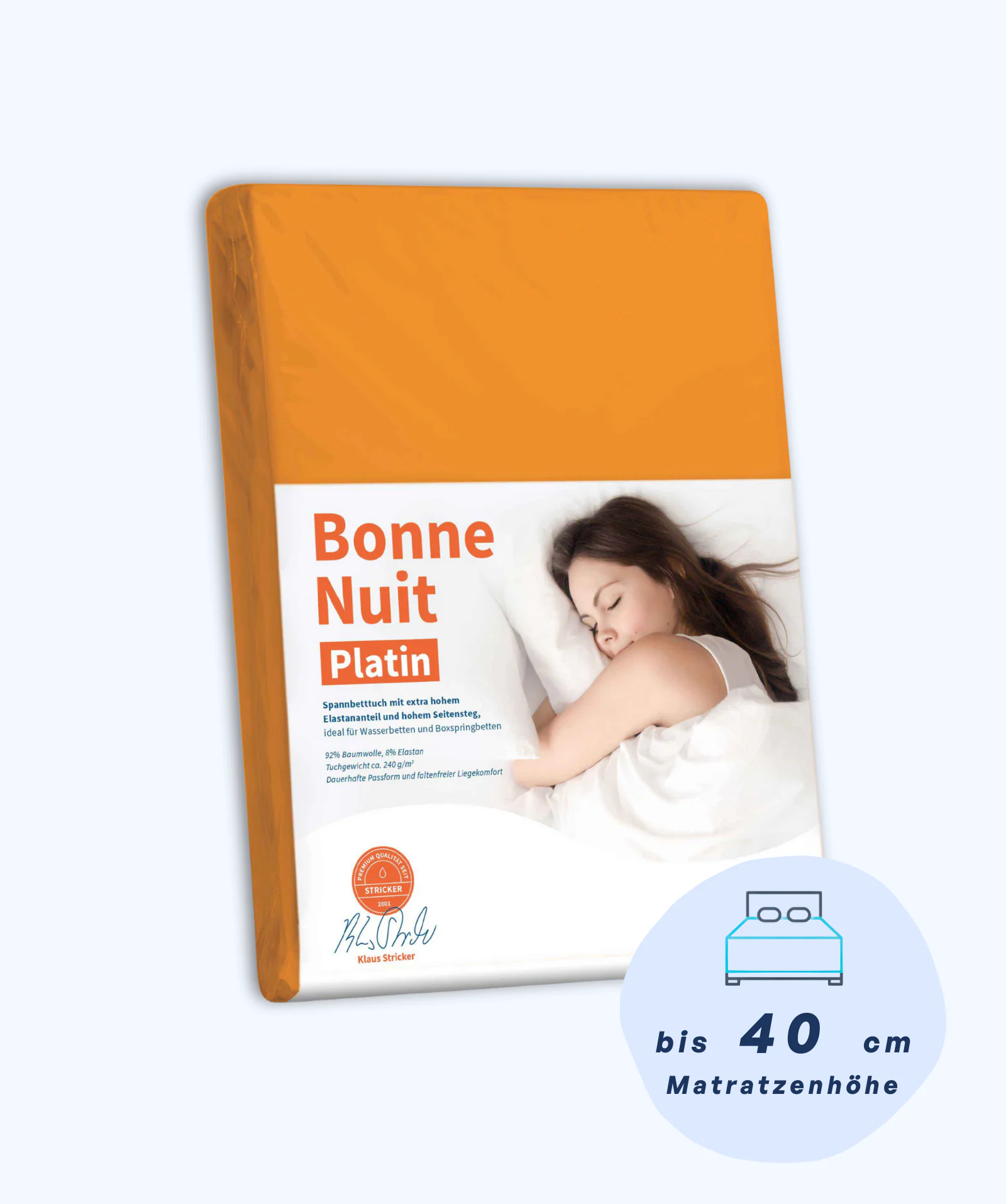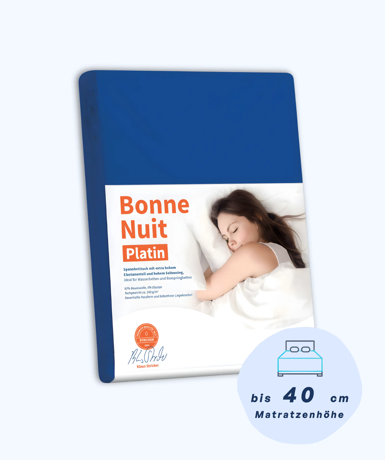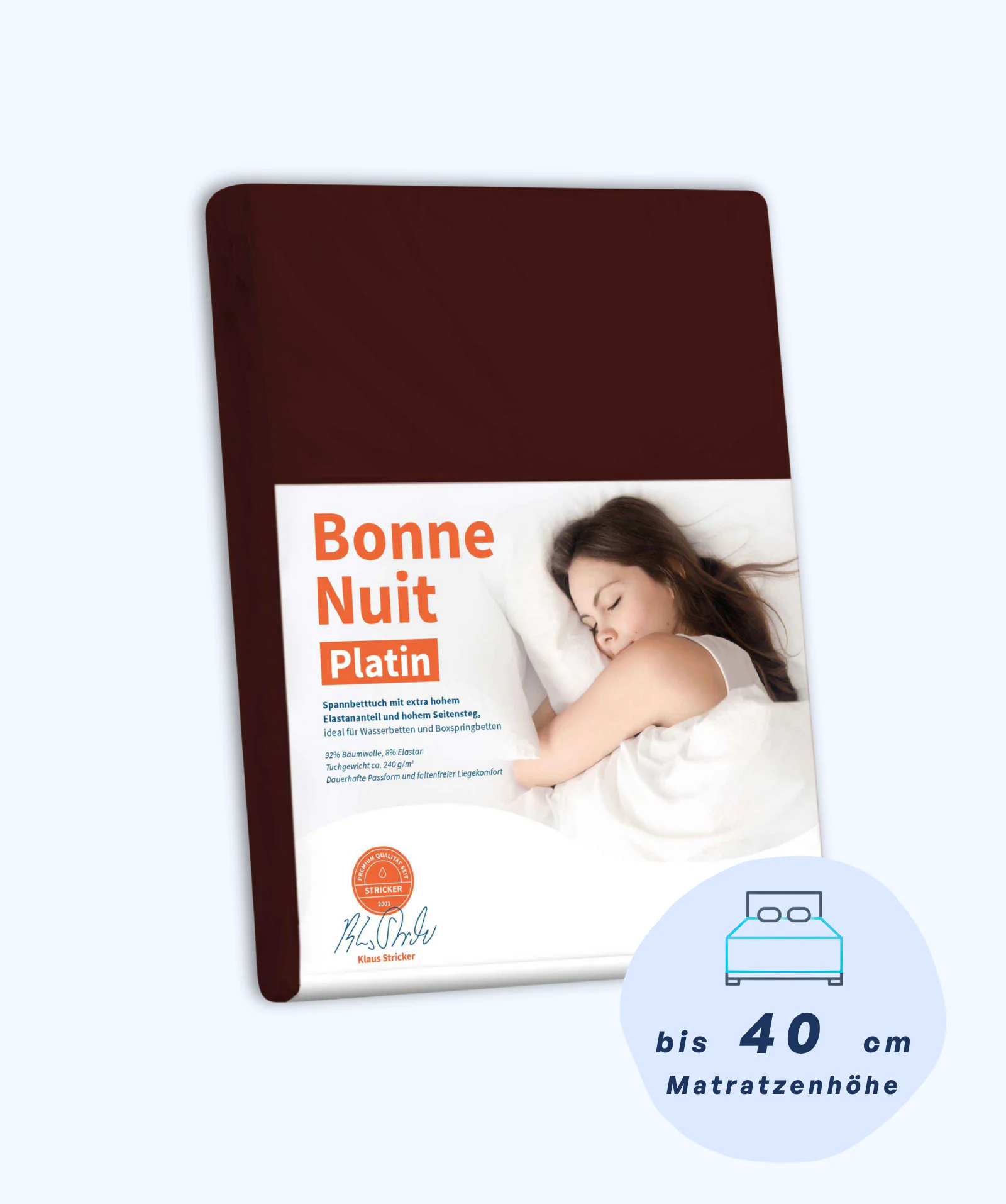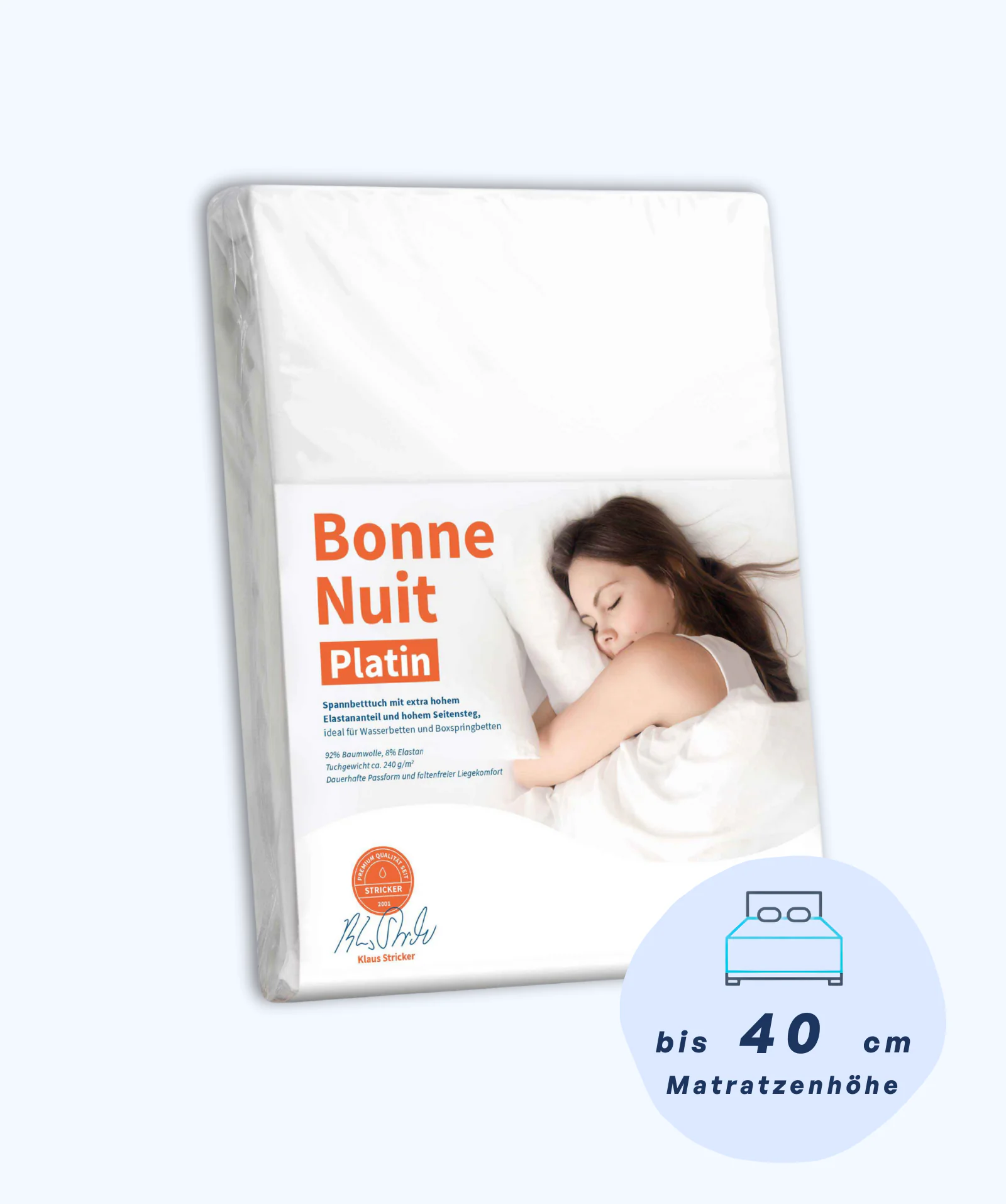 Premium Spannbettlaken Bonne Nuit Platin für Wasserbetten und Boxspringbetten bis 40 cm Matratzenhöhe. In 3 Größen und 44 Farben für Ihr Zuhause.