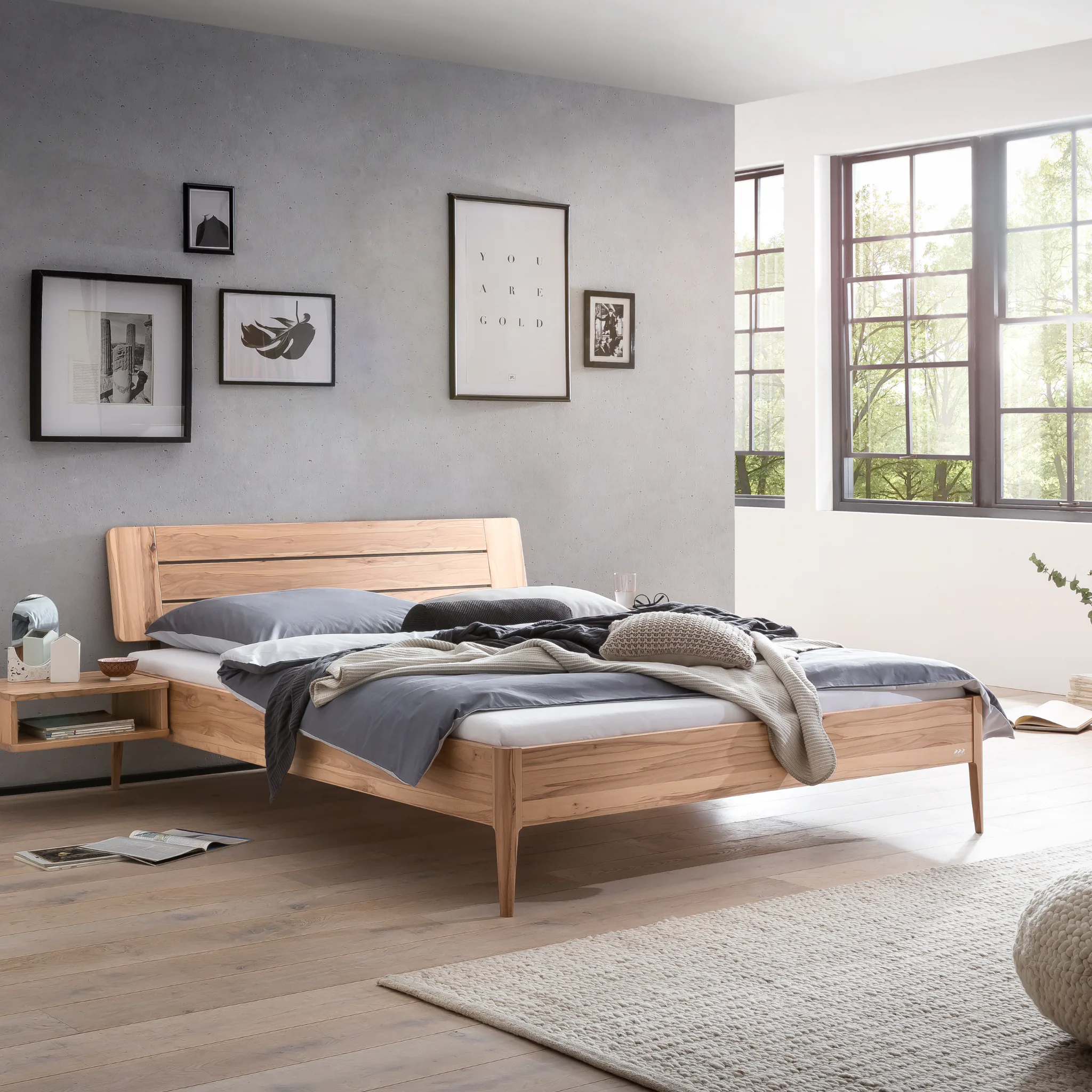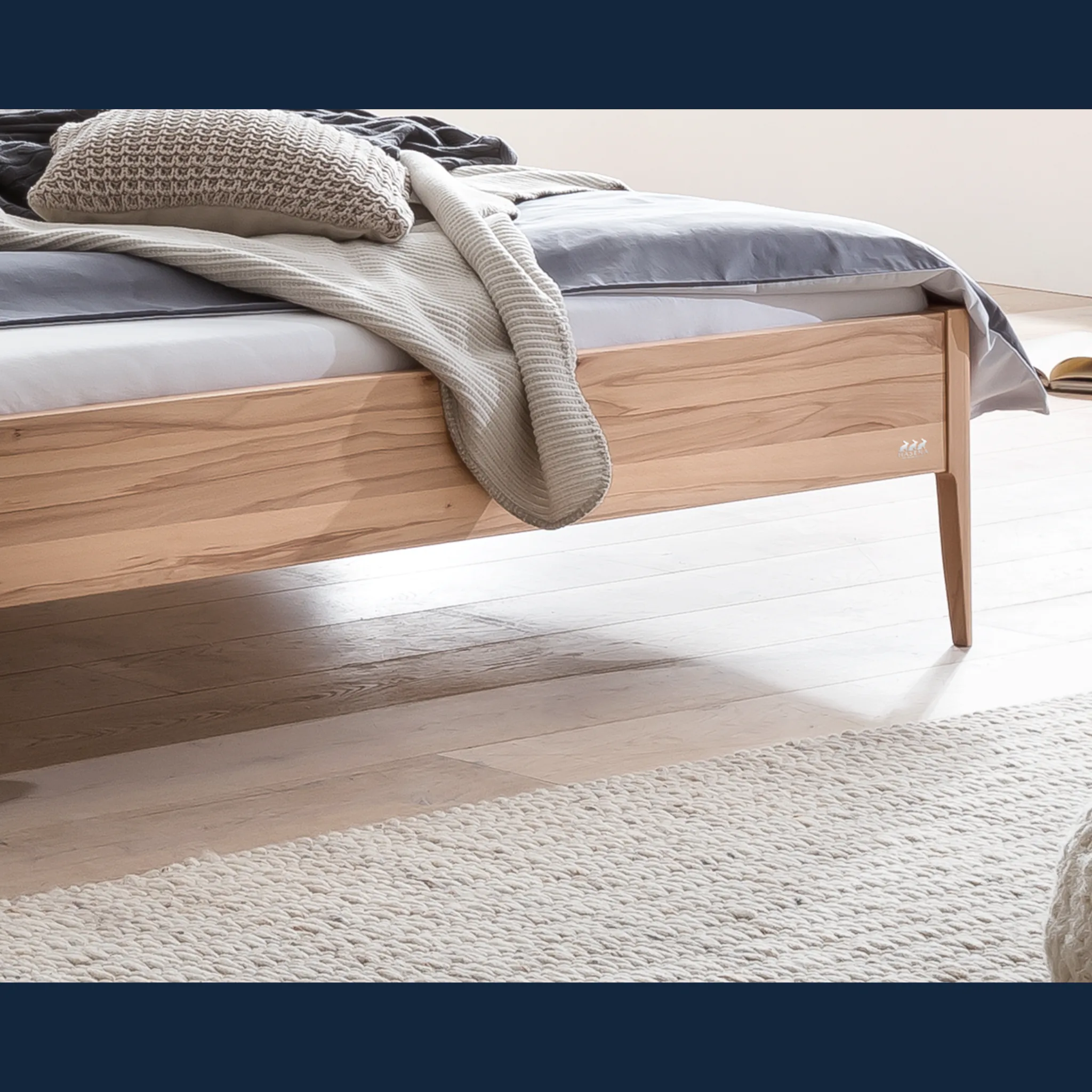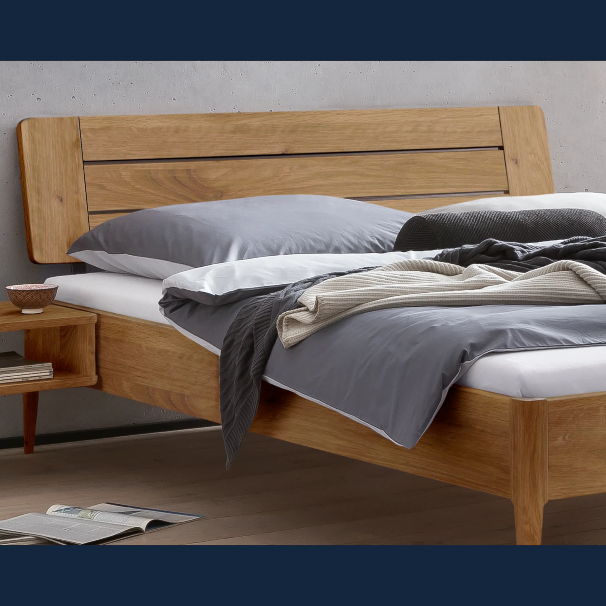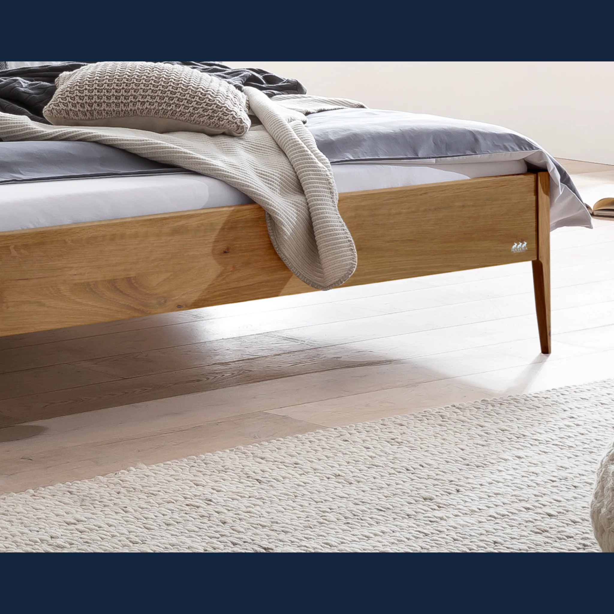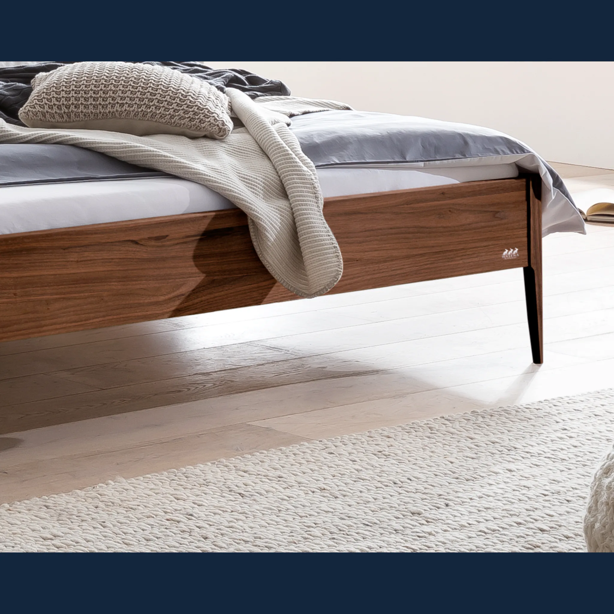 Unterstreichen Sie Ihren Stil mit leiser Eleganz. Das Design des Massivholzbett Hasena Busseto wirkt leicht und ausgewogen: feine Radien, schlanke Füße, ruhige Flächen. Zur Auswahl stehen Buche und Eiche als massives Hartholz in Möbelqualität sowie Nussbaum in solider Ausführung. Sauber verarbeitete Kanten und eine stimmige Maserung geben dem Schlafzimmer ein zurückhaltendes, hochwertiges Bild. Das Bett fügt sich souverän in bestehende Einrichtungen ein und schafft eine ruhige Atmosphäre für den Abend.