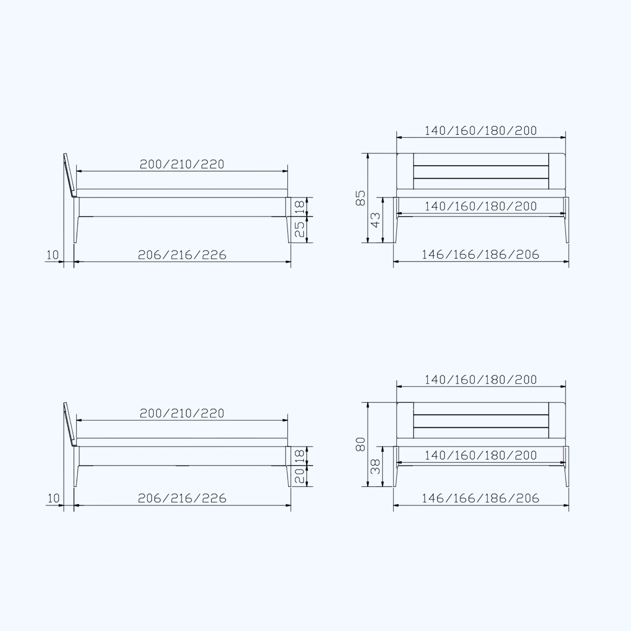 | Liegefläche | 140×200 cm, 140×210 cm, 140×220 cm, 160×200 cm, 160×210 cm, 160×220 cm, 180×200 cm, 180×210 cm, 180×220 cm, 200×200 cm, 200×210 cm, 200×220 cm |