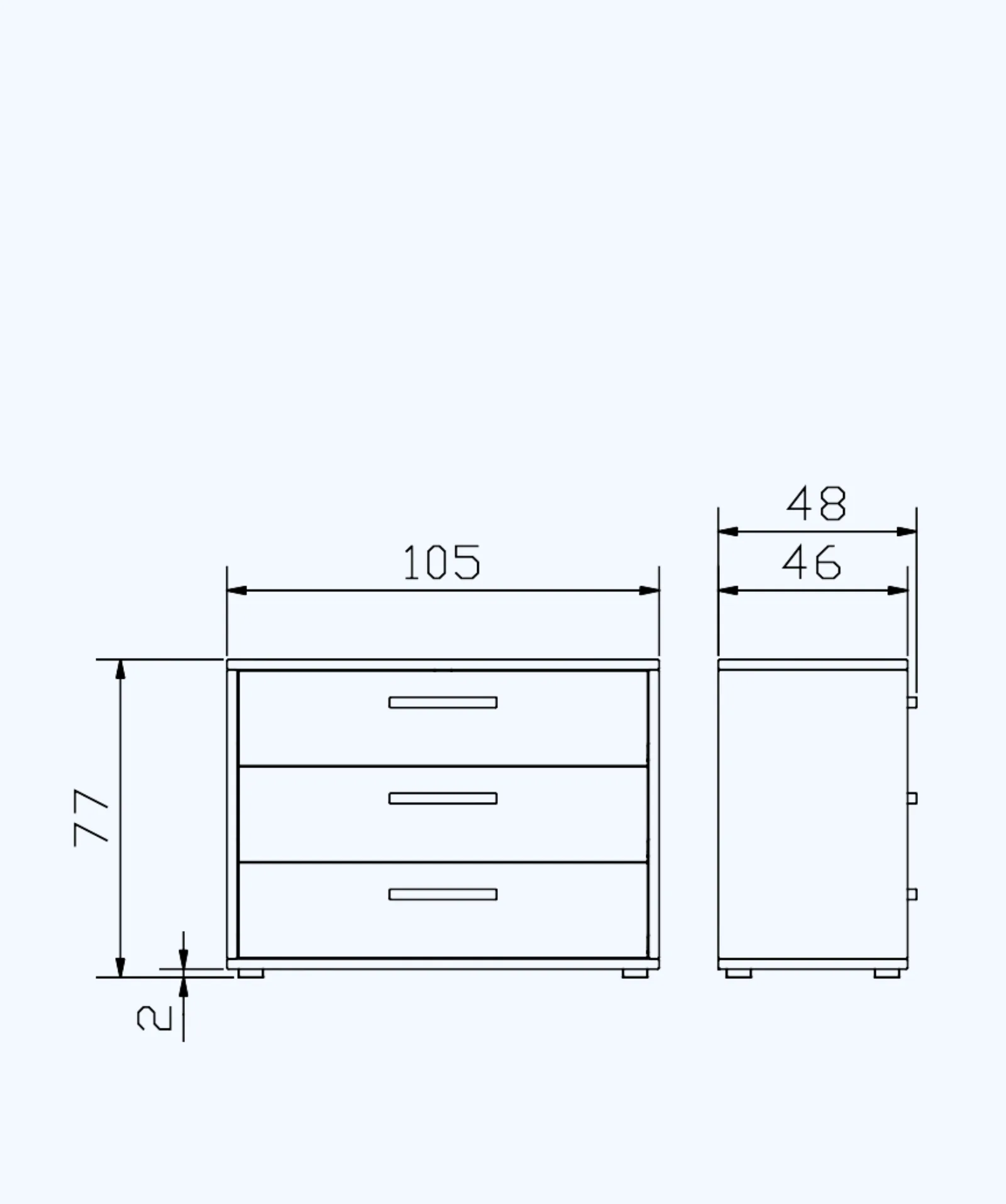 Unterstreichen Sie Ihren Stil mit leiser Eleganz: Kommode aus massiver Eiche, drei Schubladen, 105×46×77 cm, montiert geliefert. Erhältlich in 2 Farben.