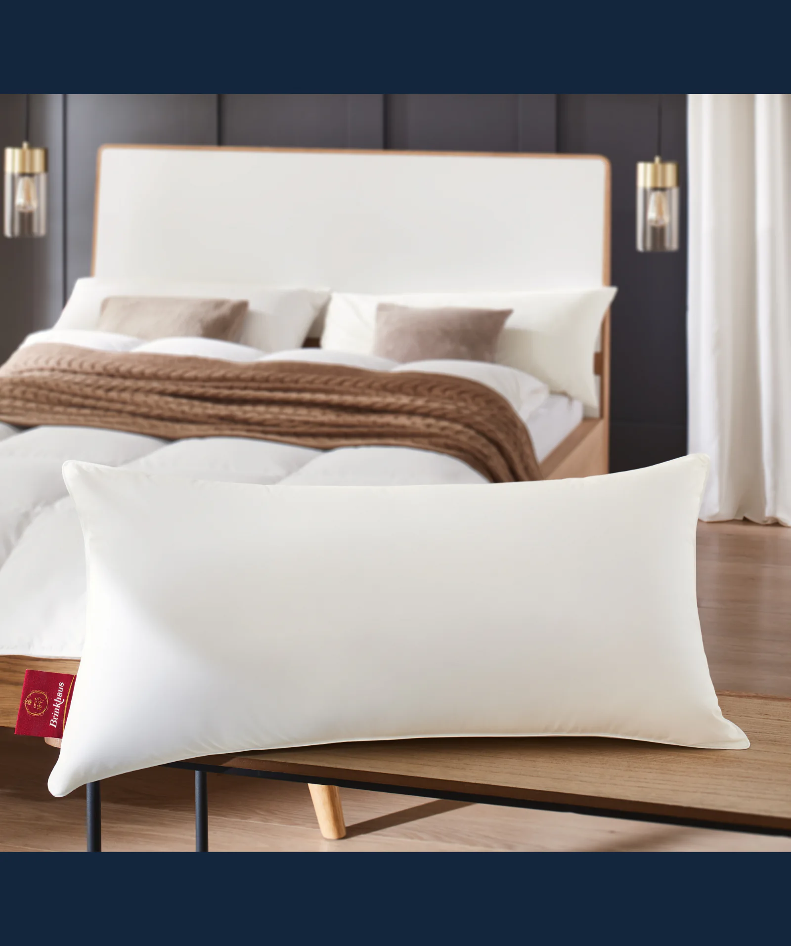 Premium Daunen-Schlafkissen JUWEL VISCO Brinkhaus, mit daunenweicher Füllung und Mako-Baumwollbezug, waschbar bis 60 °C, in Größe 40 x 80 cm für ruhigen Schlaf.