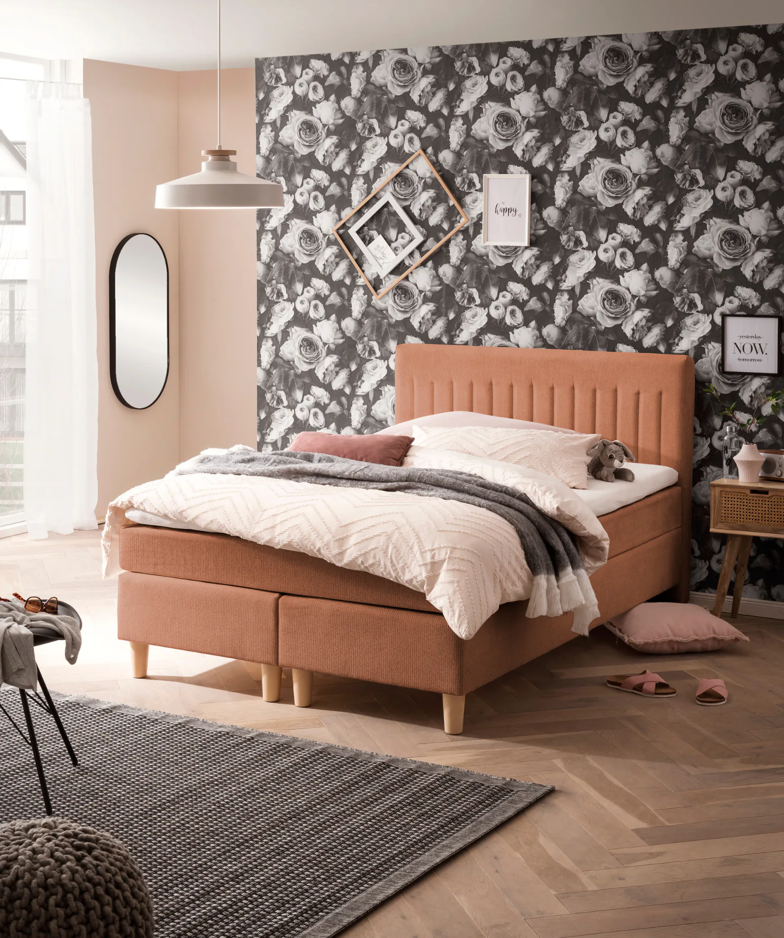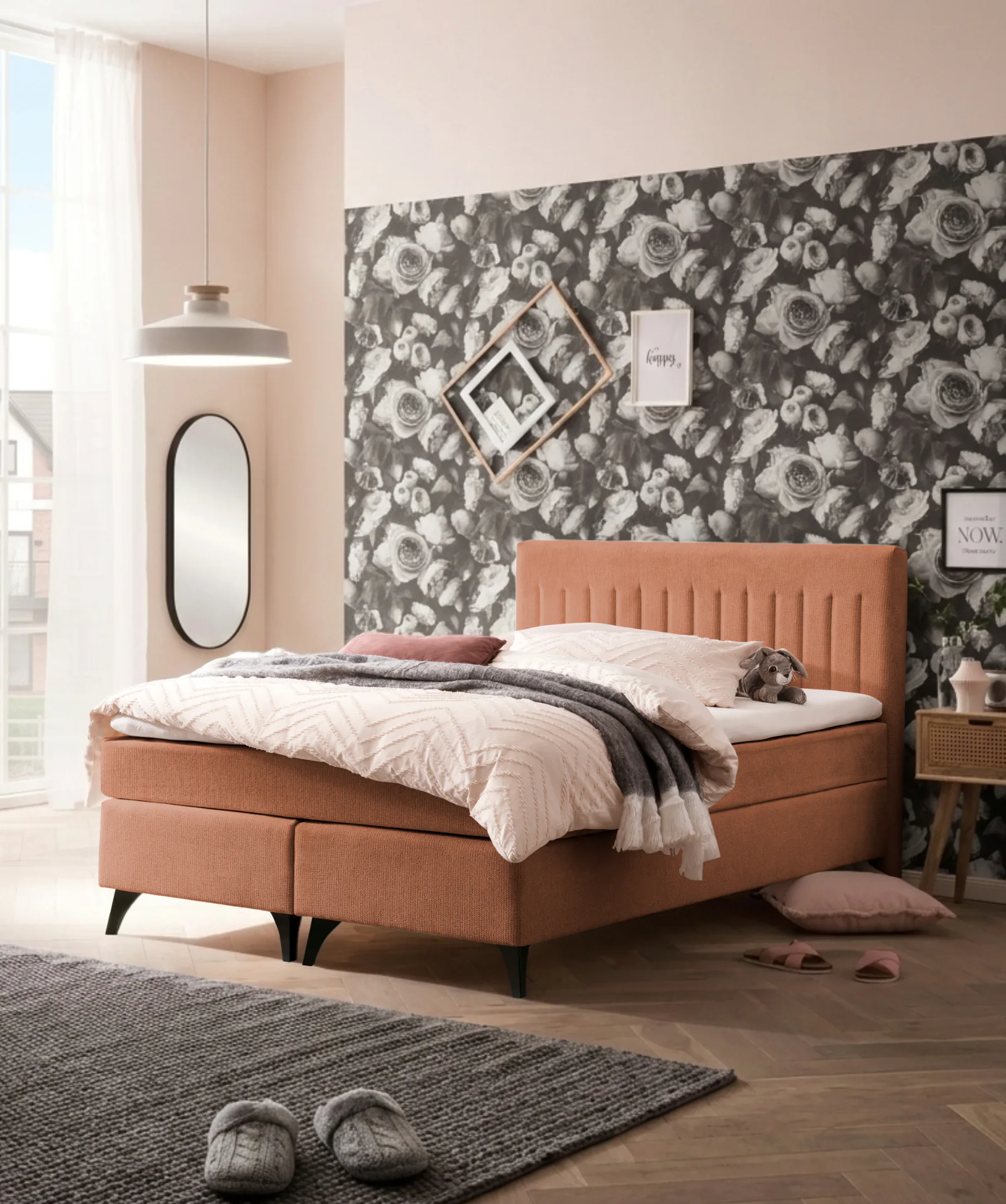 Mit einer Liegefläche von ca. 140 x 200 oder 180 x 200 cm und einem Kopfteil von ca. 109 cm Höhe eignet sich das Modell für Schlafzimmer, die Komfort klar zeigen, aber optisch ruhig bleiben sollen. Vier sichtbare Frontfüße sorgen für einen sauberen Abschluss. Das erleichtert Auswahl, Integration und Nutzung im Alltag.Materialien & Farben