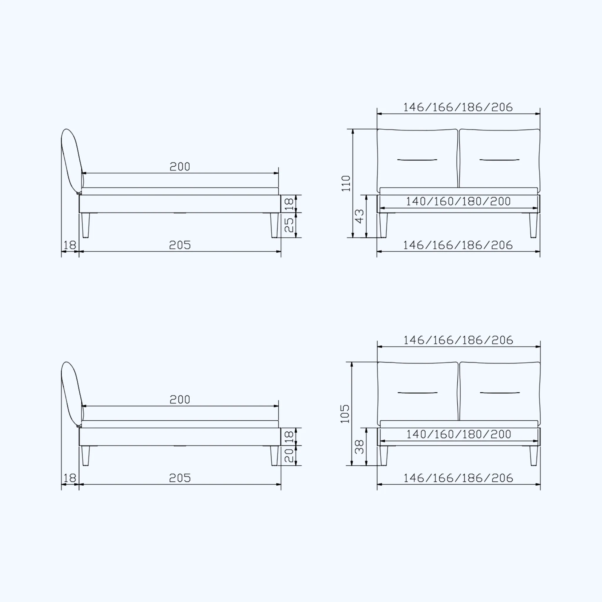 - Unterstreichen Sie Ihren Stil mit leiser Eleganz: sanfte Radien an Kopfteil und Rahmen schaffen Harmonie.