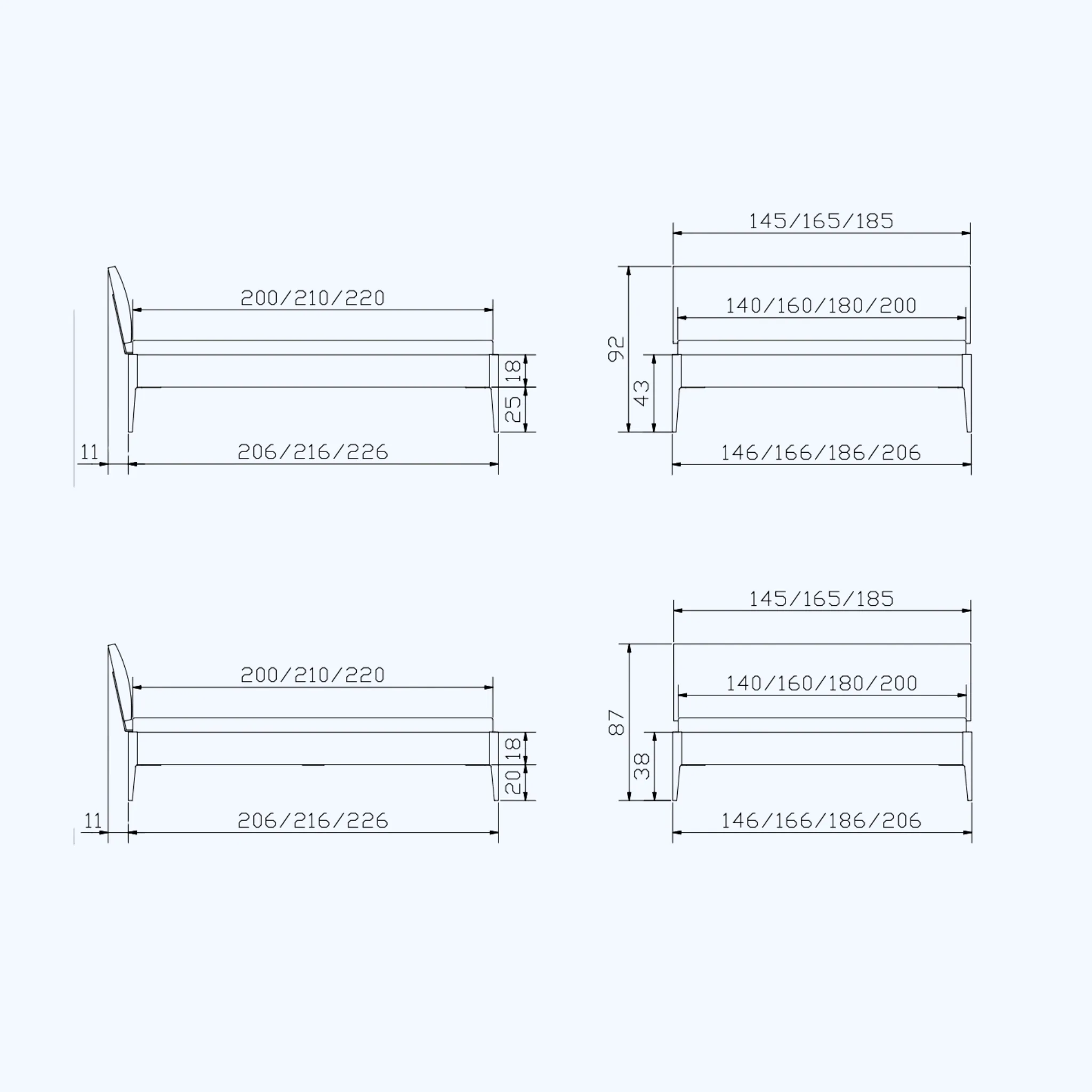 | Liegefläche | 140×200 cm, 140×210 cm, 140×220 cm, 160×200 cm, 160×210 cm, 160×220 cm, 180×200 cm, 180×210 cm, 180×220 cm, 200×200 cm, 200×210 cm, 200×220 cm |