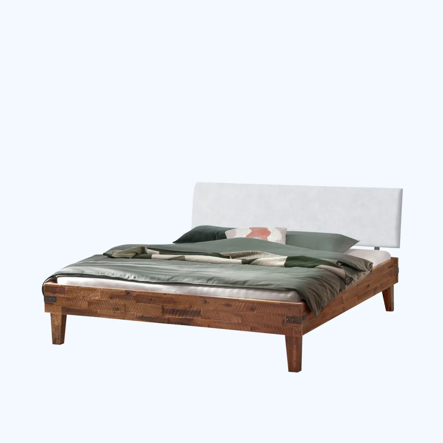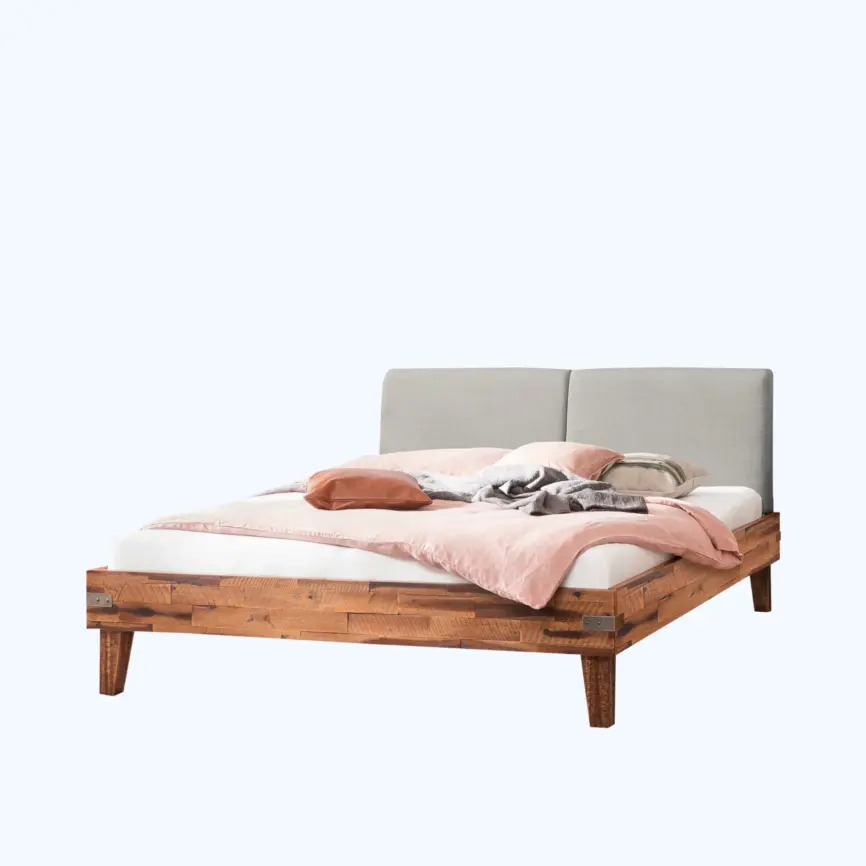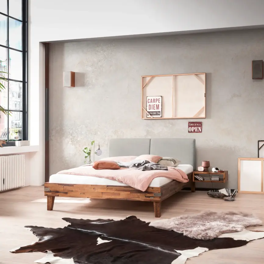 Zwei geräumige Bettkästen bieten praktischen Platz für Bettwäsche, Kissen oder saisonale Textilien. Durch die präzise gefertigten Auszugsschienen gleiten die Schubladen leicht und leise – eine funktionale Lösung, die Ordnung und Ruhe in den Raum bringt.Natürliches Design mit Charakter