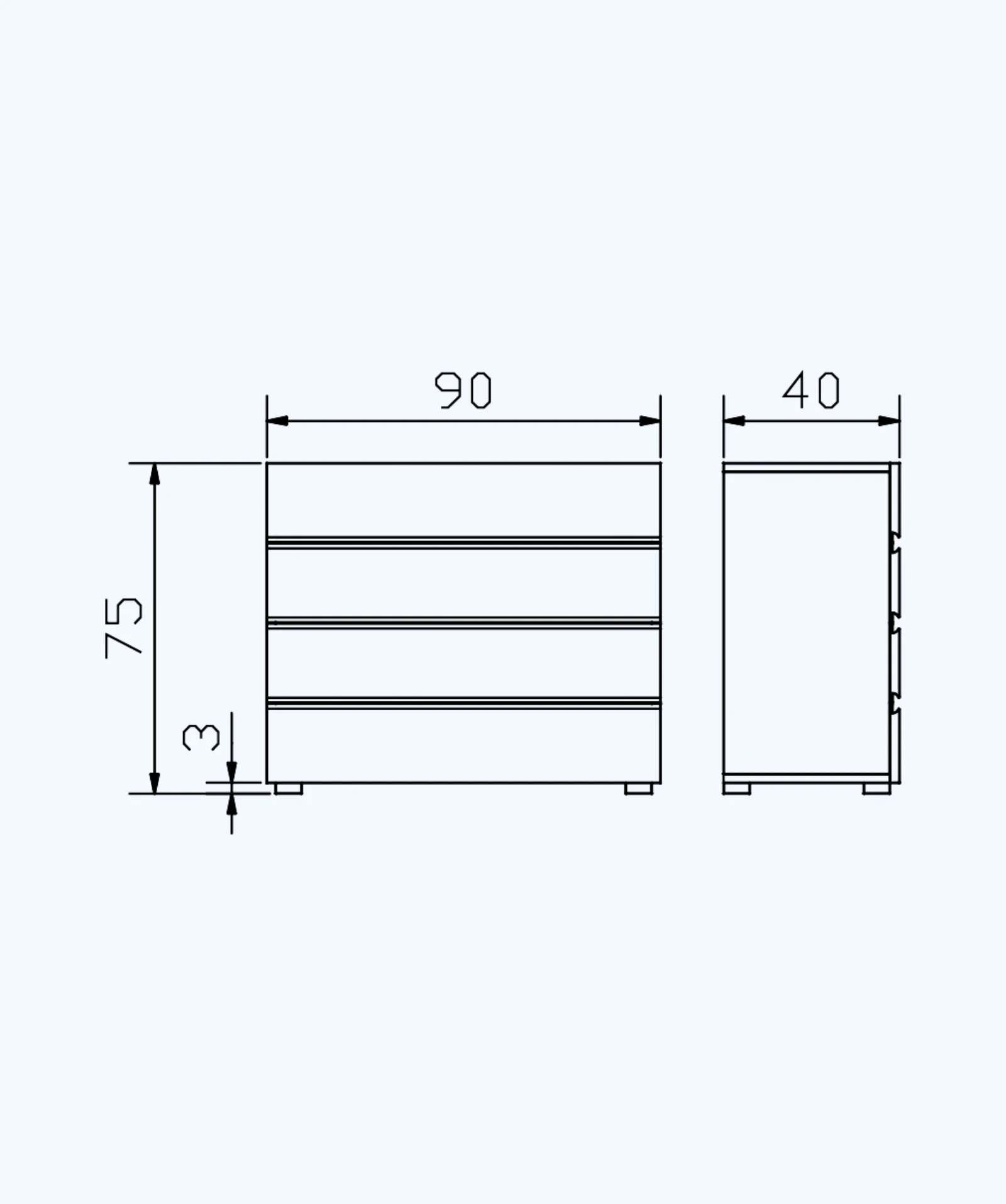 - Vier Schubladen bieten übersichtlichen Stauraum