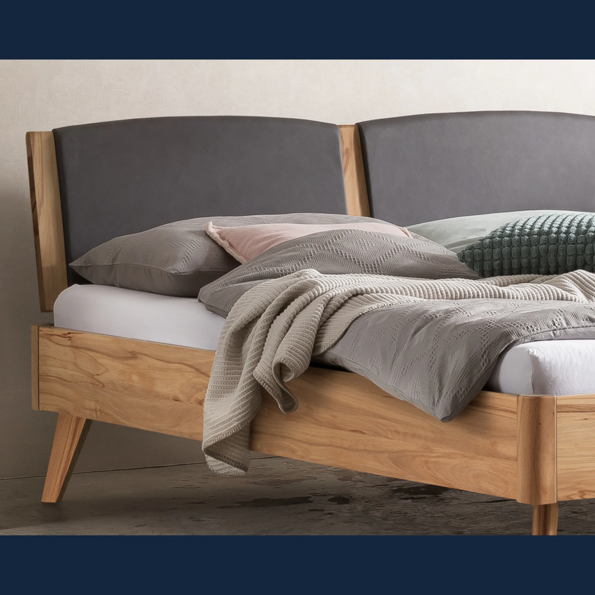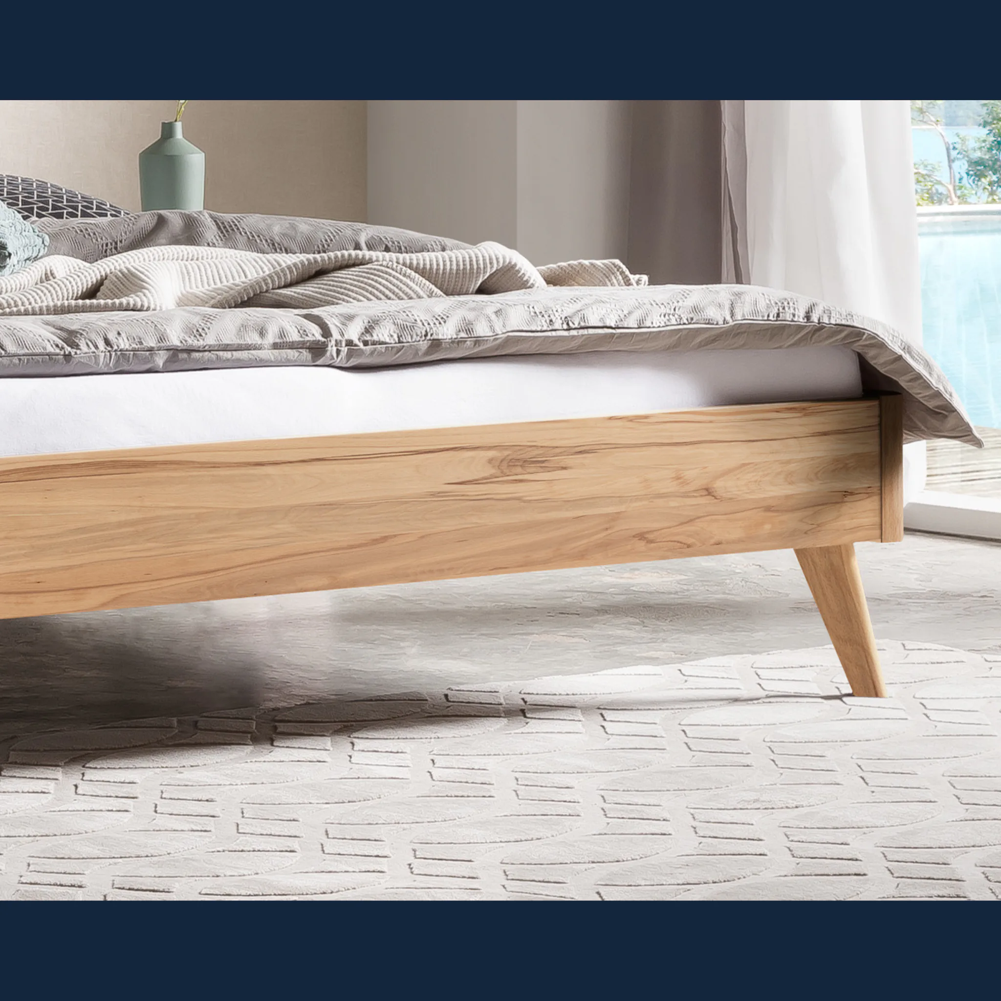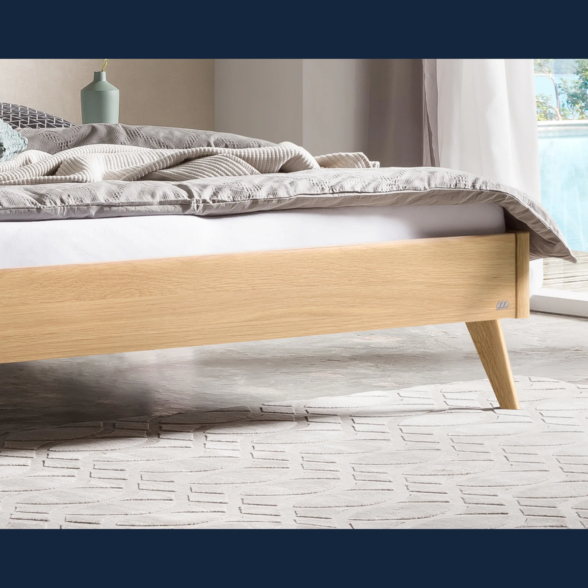 - Konische Füße erleichtern die Reinigung rund um das Bett und erhalten visuelle Ruhe.