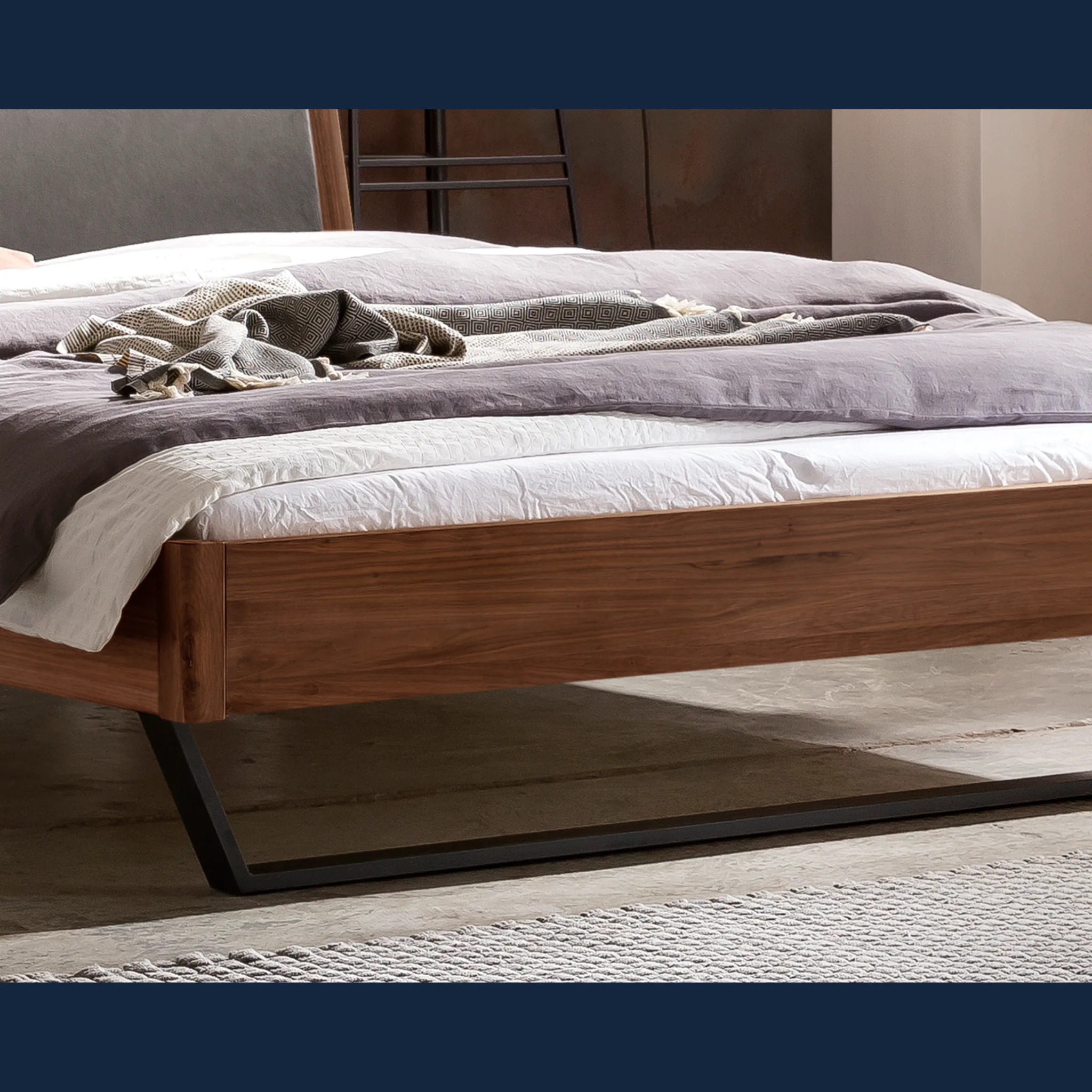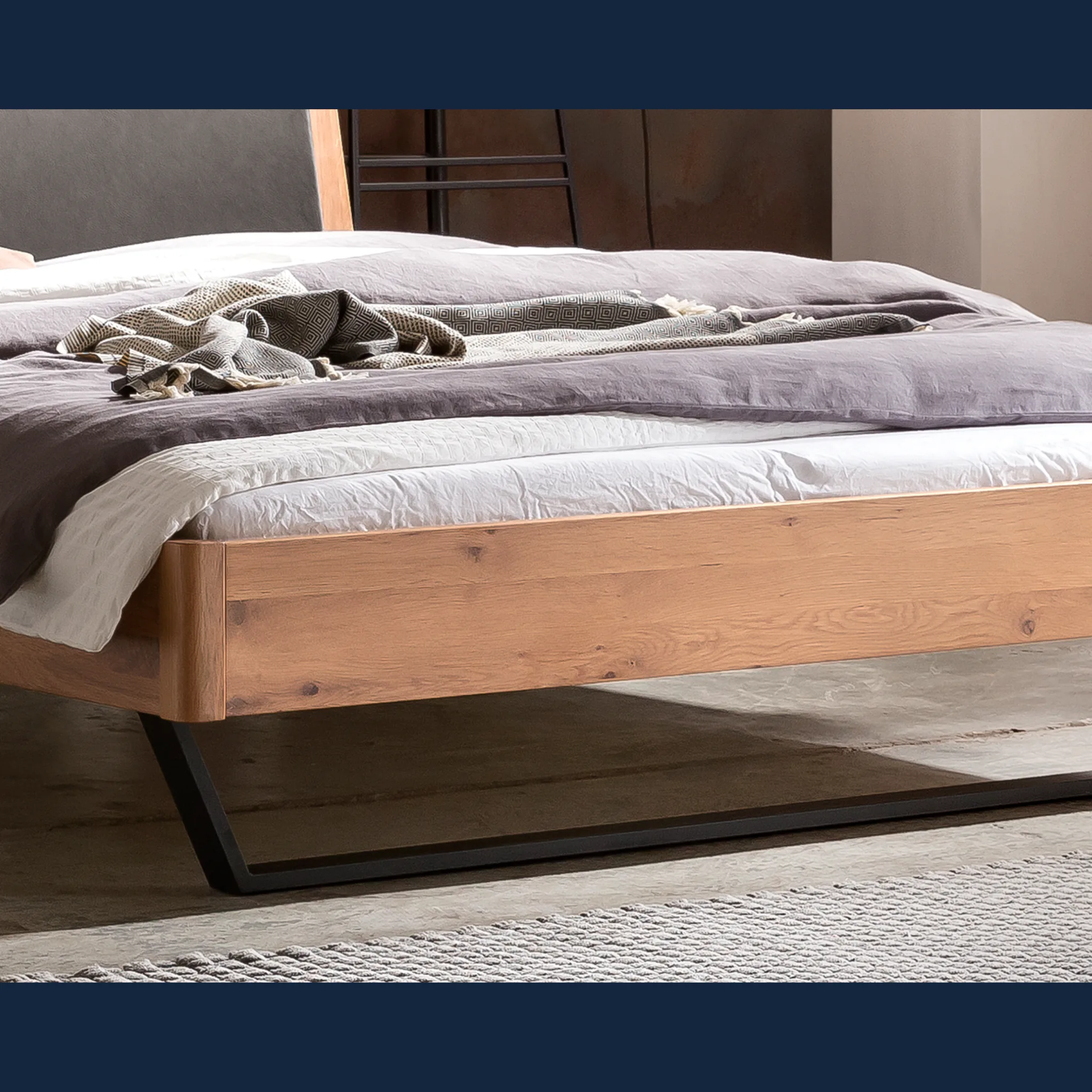 Das Massivholzbett Hasena Marola fügt sich harmonisch in moderne und zeitlose Schlafzimmerkonzepte ein. Mit Oberflächen in Eiche, Buche oder Nussbaum können Sie das Bett auf vorhandene Möbel abstimmen und eine stimmige Linie schaffen. Das dezente Kopfteil und die dunklen Stahlkufen unterstützen einen klaren, ruhigen Gesamteindruck, der Ihr Schlafzimmer strukturiert und dennoch zurückhaltend wirken lässt.