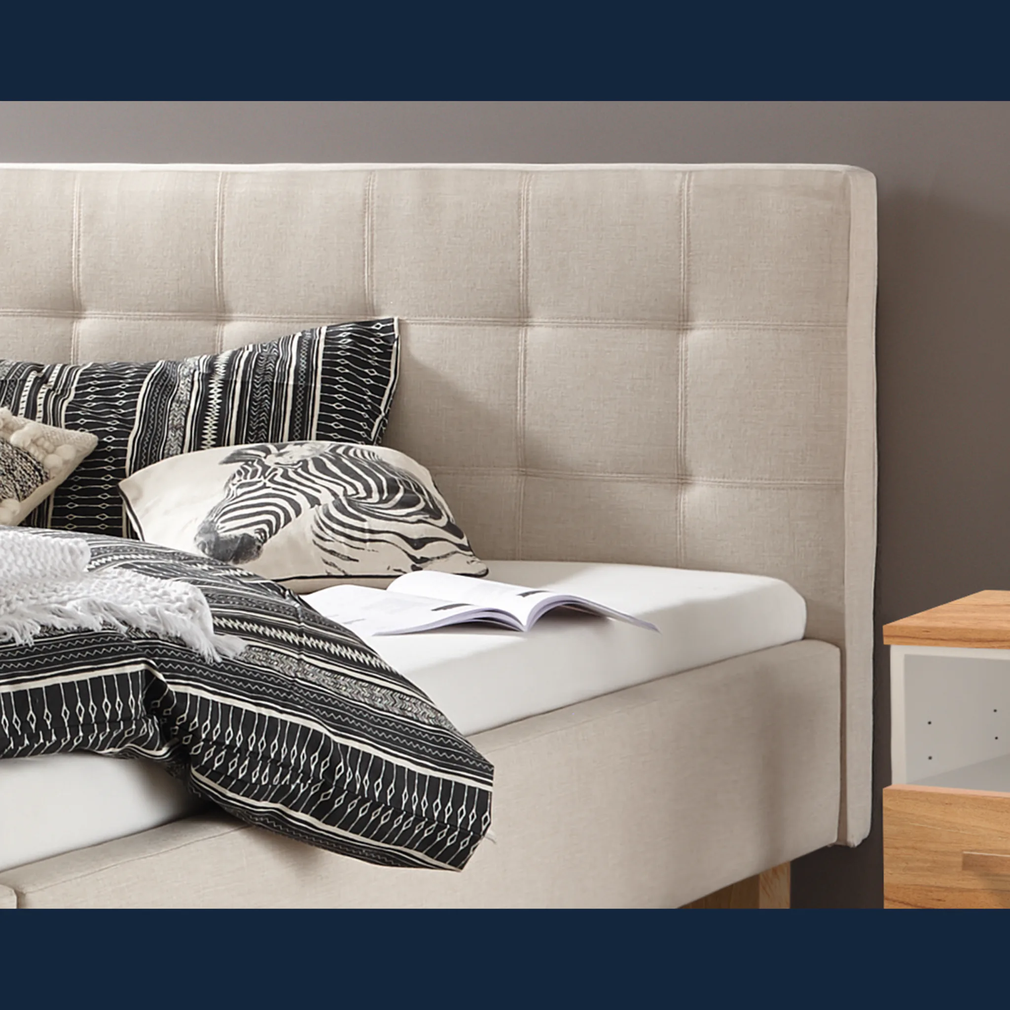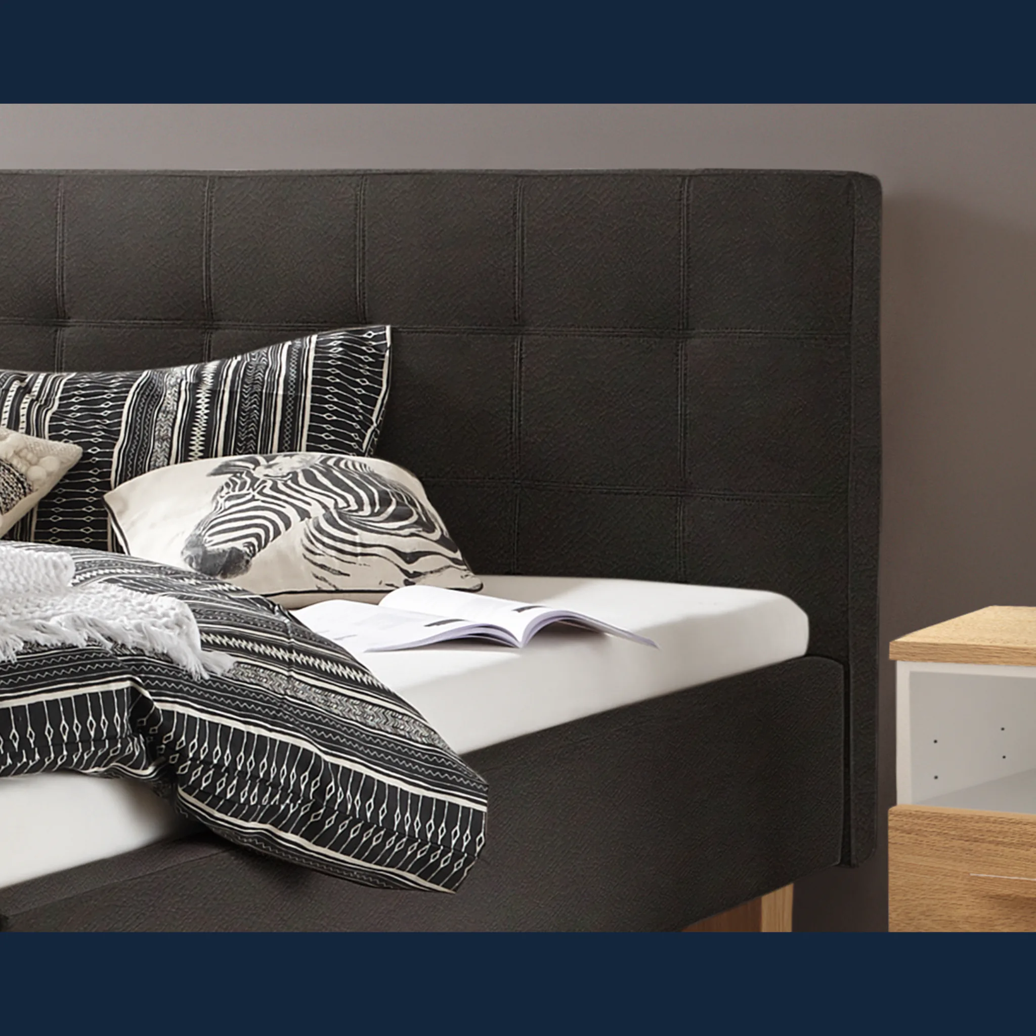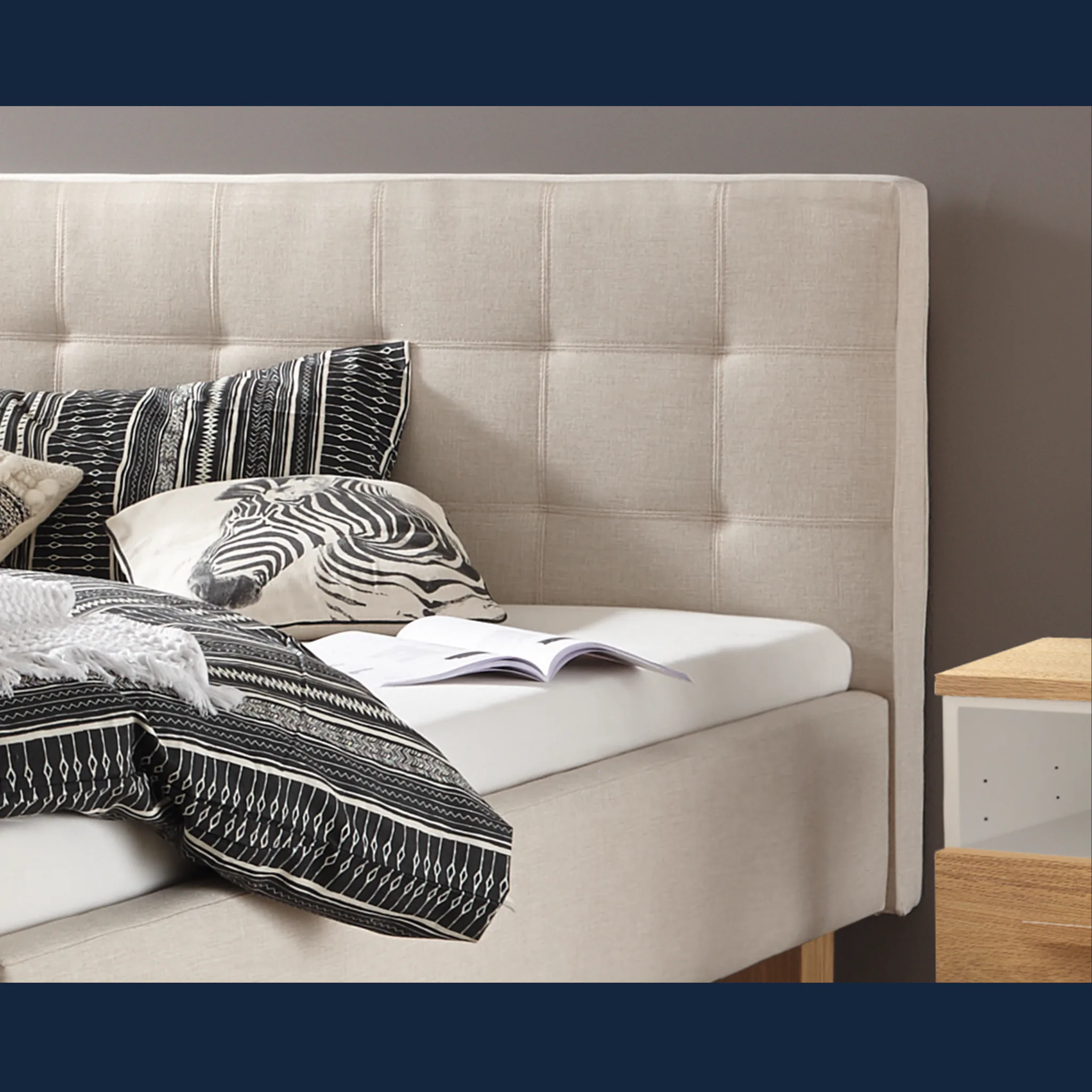 - Erleben Sie visuelle Ruhe: weich gepolstertes Kopfteil stützt angenehm beim Lesen und schafft eine entspannte Atmosphäre.