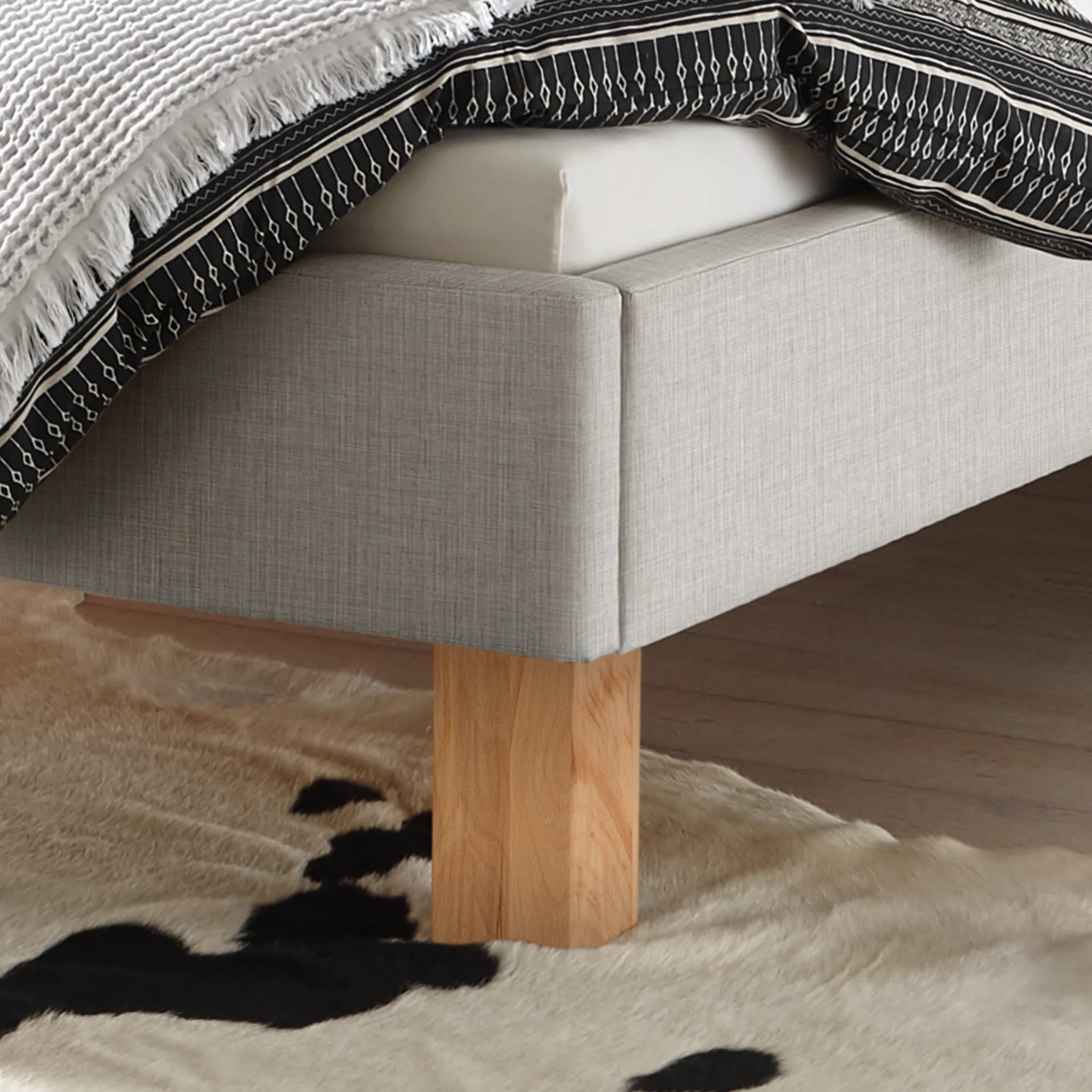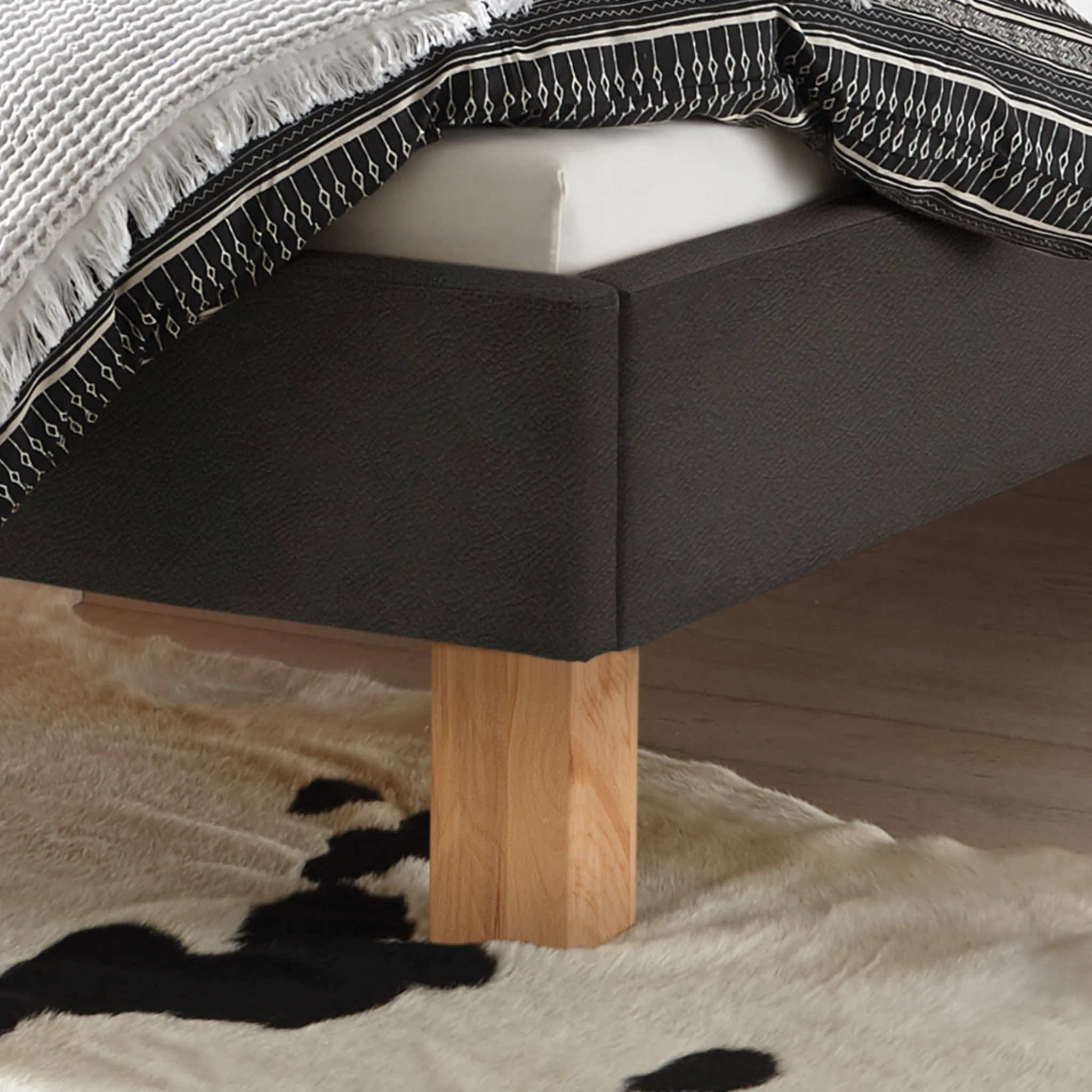 - Massivholzfüße aus Eiche, Nussbaum oder Buche in Möbelqualität geben natürliche Wärme und eine wertige Anmutung.