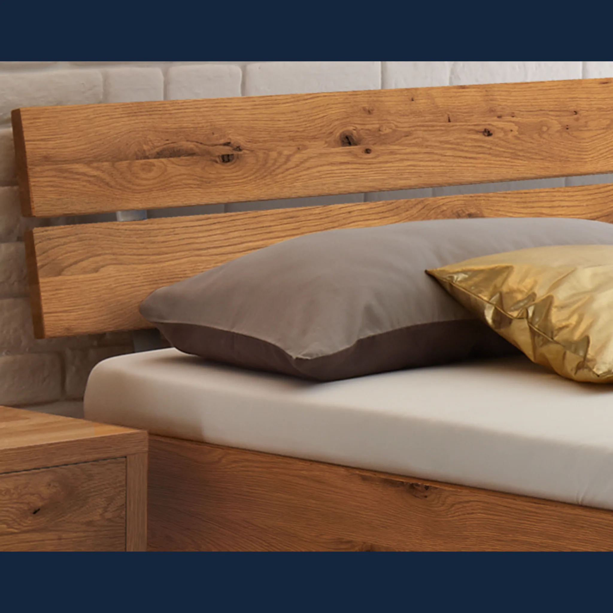 Erleben Sie wertige Haptik und klare Linien. Das Massivholzbett Hasena Ortona übersetzt die Idee skandinavischer Ruhe in ein klares Design mit sanft geneigtem Holz-Kopfteil. Der Rahmen besteht aus massivem Hartholz in Möbelqualität und zeigt je nach Ausführung die warme Maserung von Eiche, Kernbuche, Wildeiche oder Nussbaum. Schlanke, konische Füße lassen das Bett leicht wirken und halten den Boden gut zugänglich. Ohne optische Überladung fügt sich Ortona unaufdringlich in Ihr Schlafzimmer und bleibt über Jahre verlässlich.
