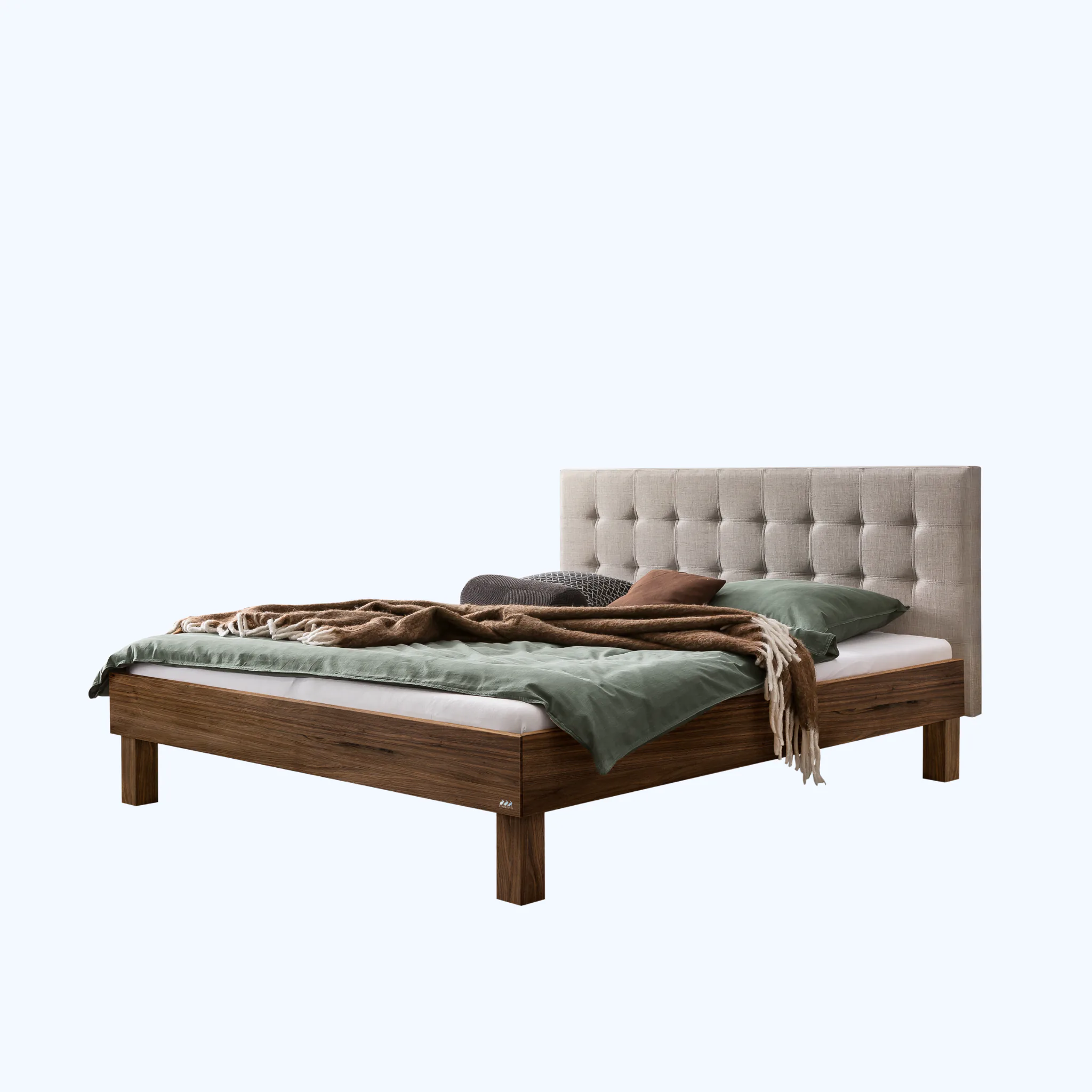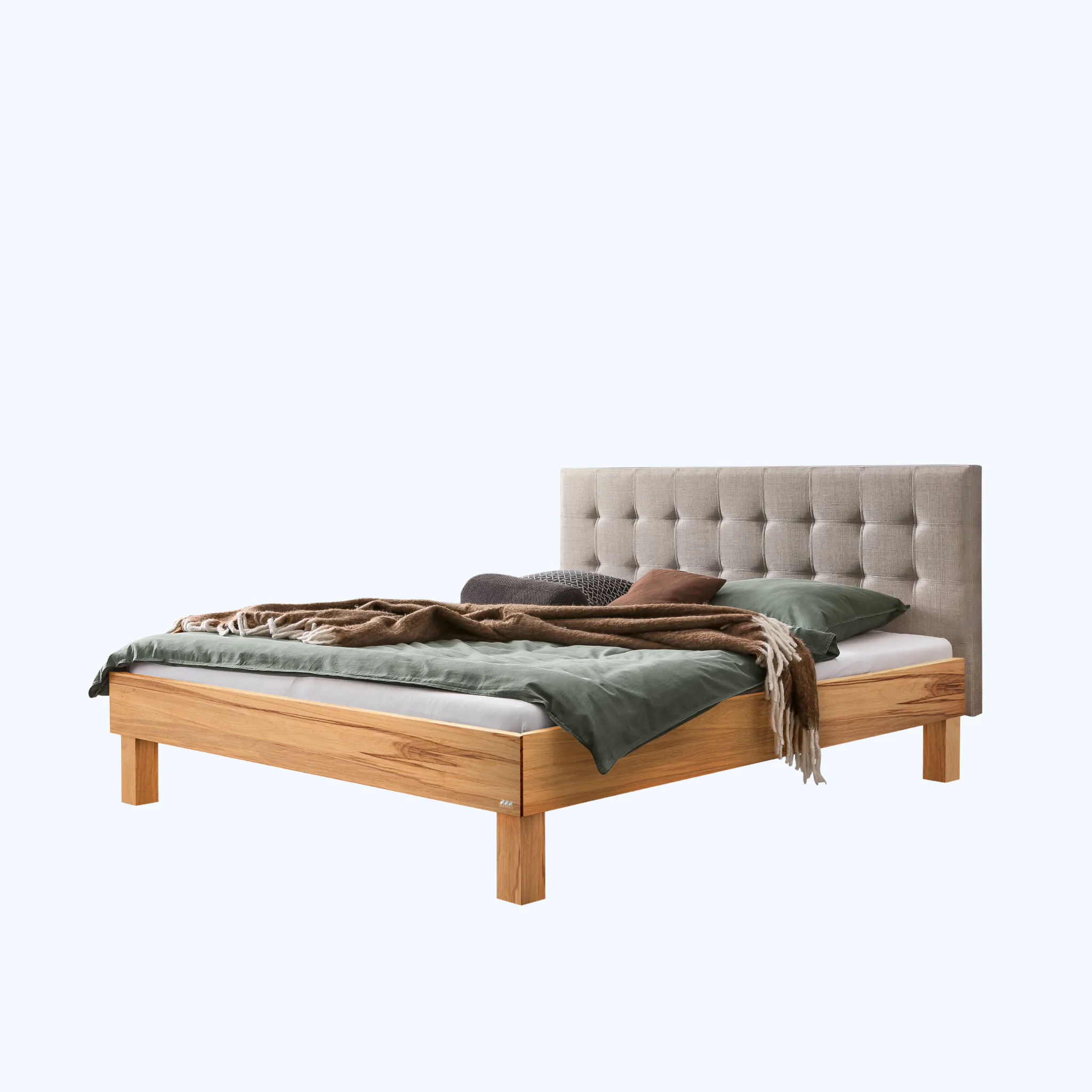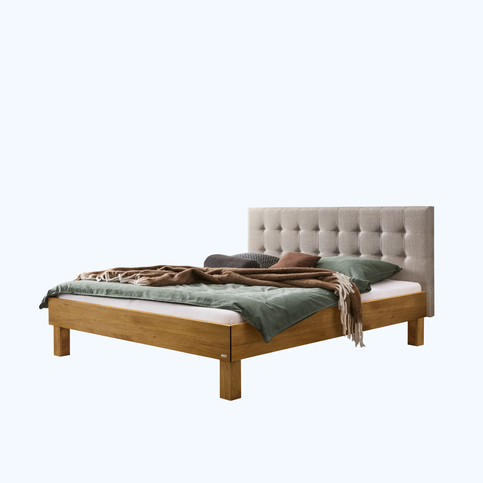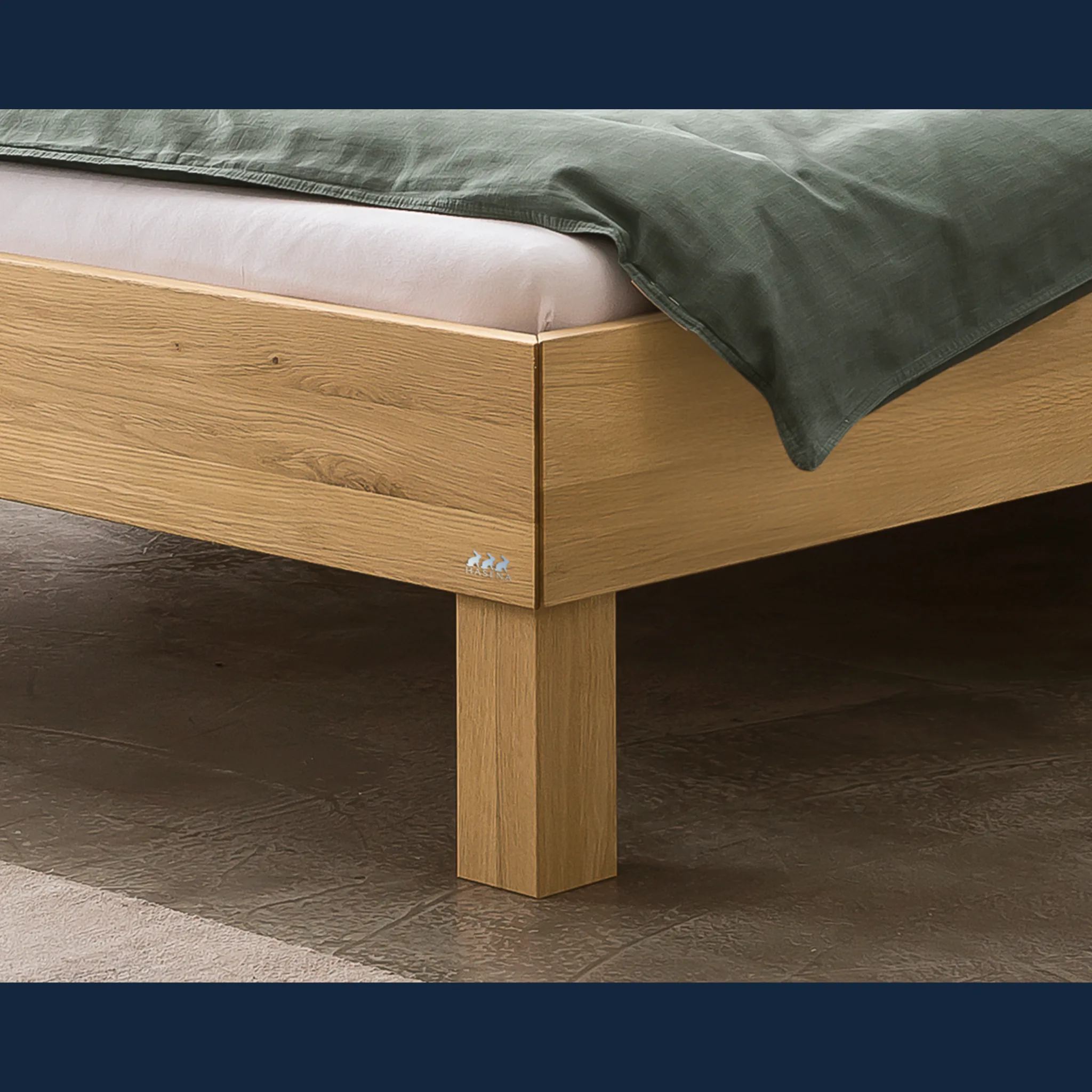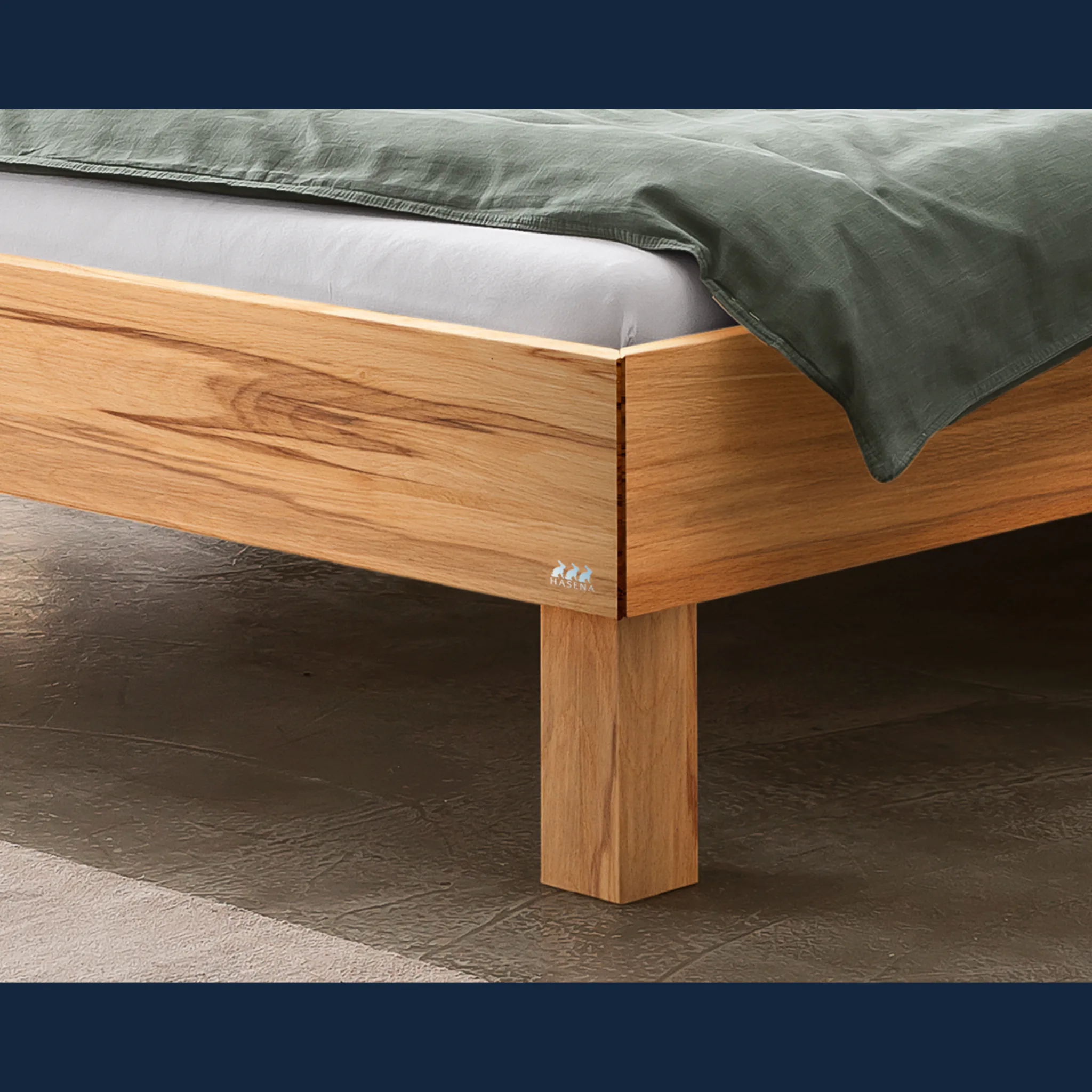 - Holzfüße erleichtern die Pflege rund um das Bett und sorgen für eine ruhige Ausstrahlung.