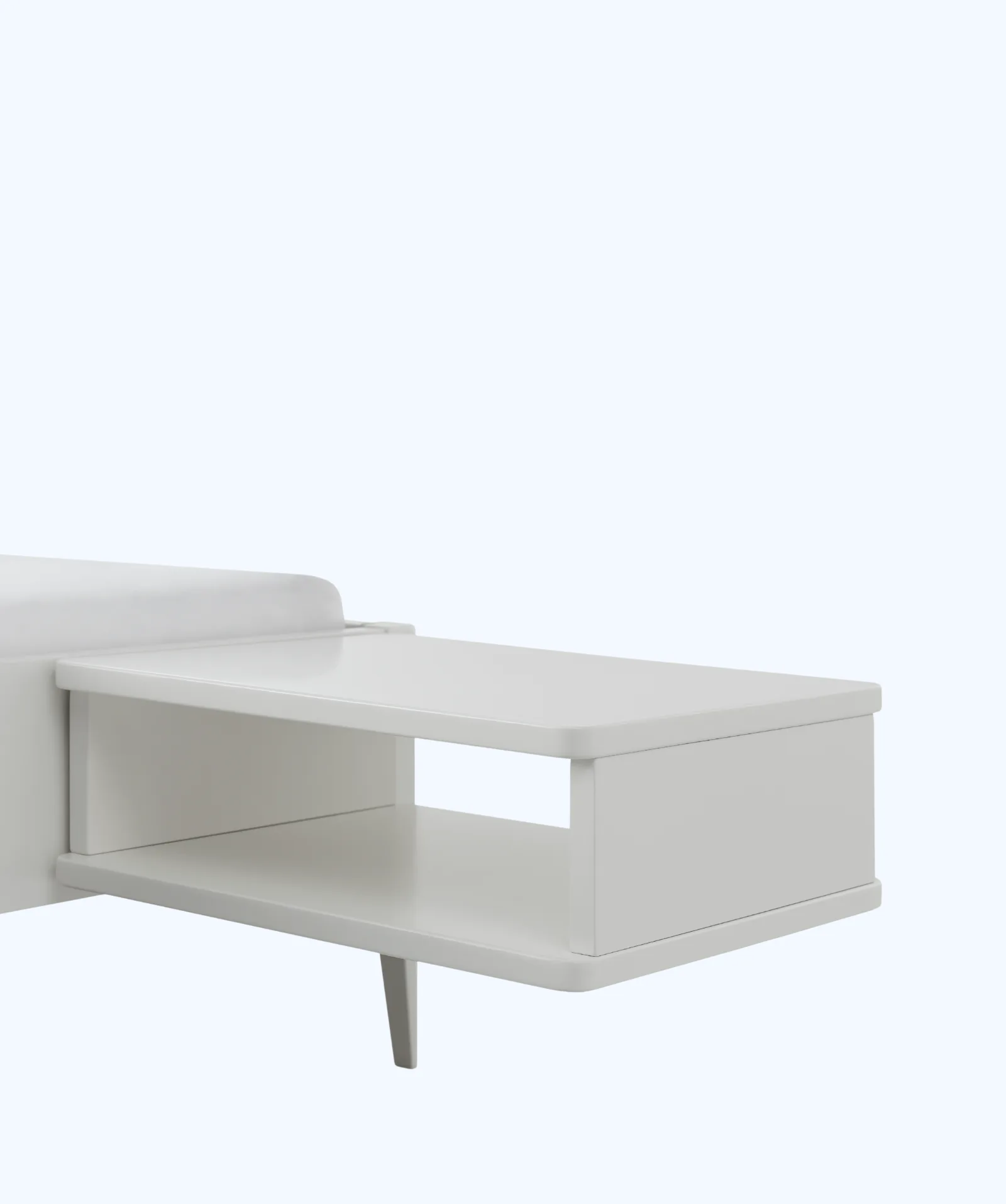 Nachttisch Seva im minimalistischen Design mit zwei offenen Ablagen. Bettseitig montiert, freier Boden, Massivholz. Erhältlich in fünf Farben.
