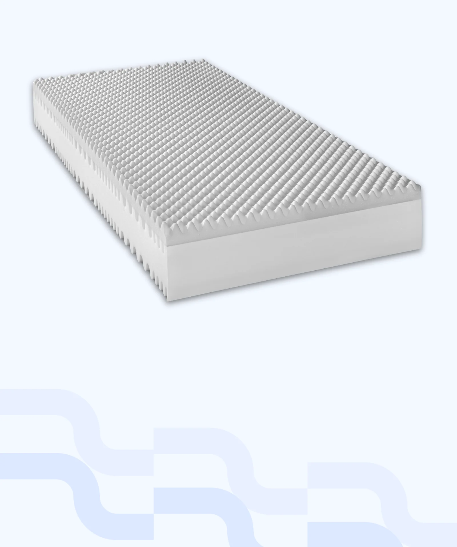 | Kern | ca. 17,5 cm Basis mit verschachteltem Wellenschnitt + einseitiger Noppenauflage 5 cm aus Komfortschaum – RG 30 mit Kerntrikot ummantelt (100 % Polyester) |