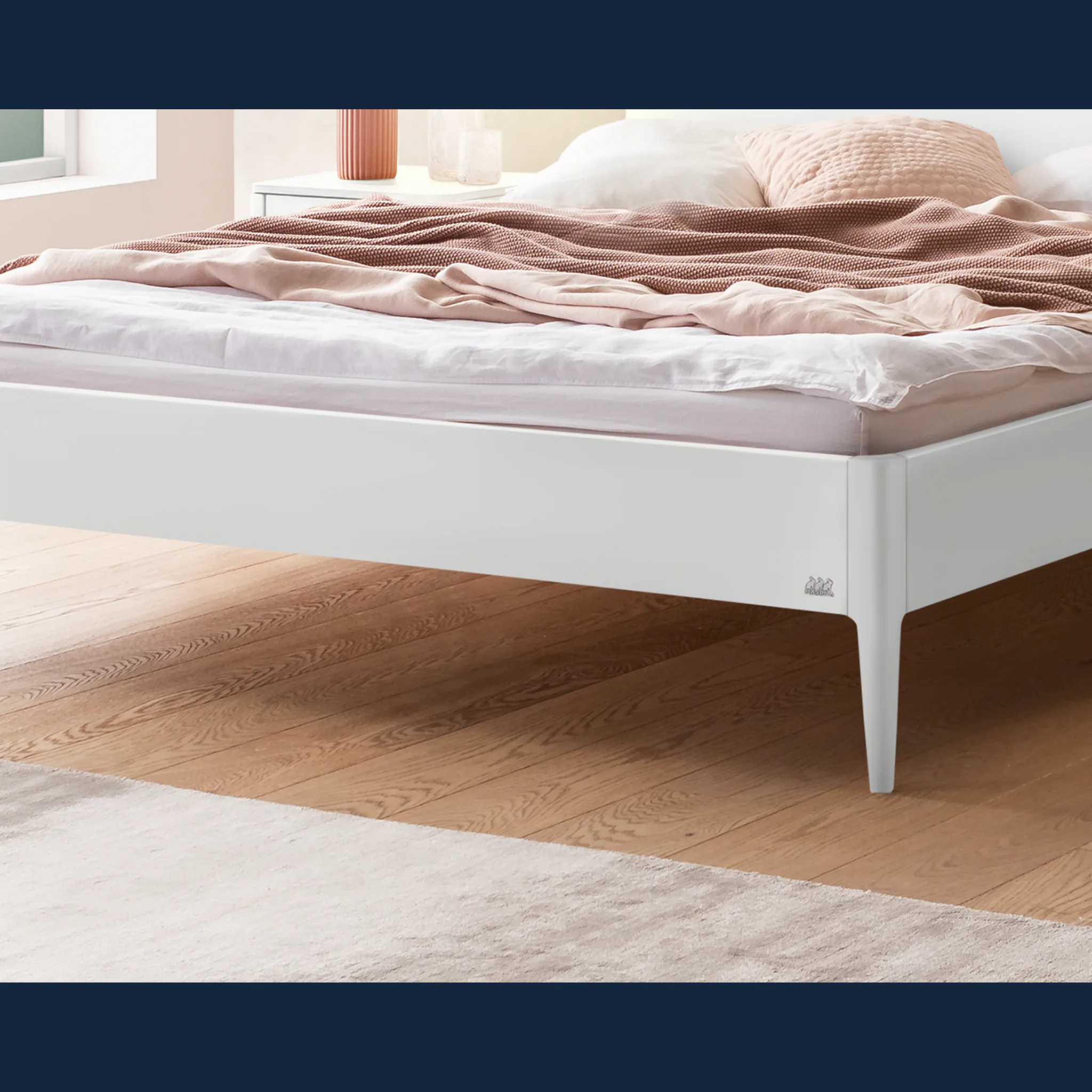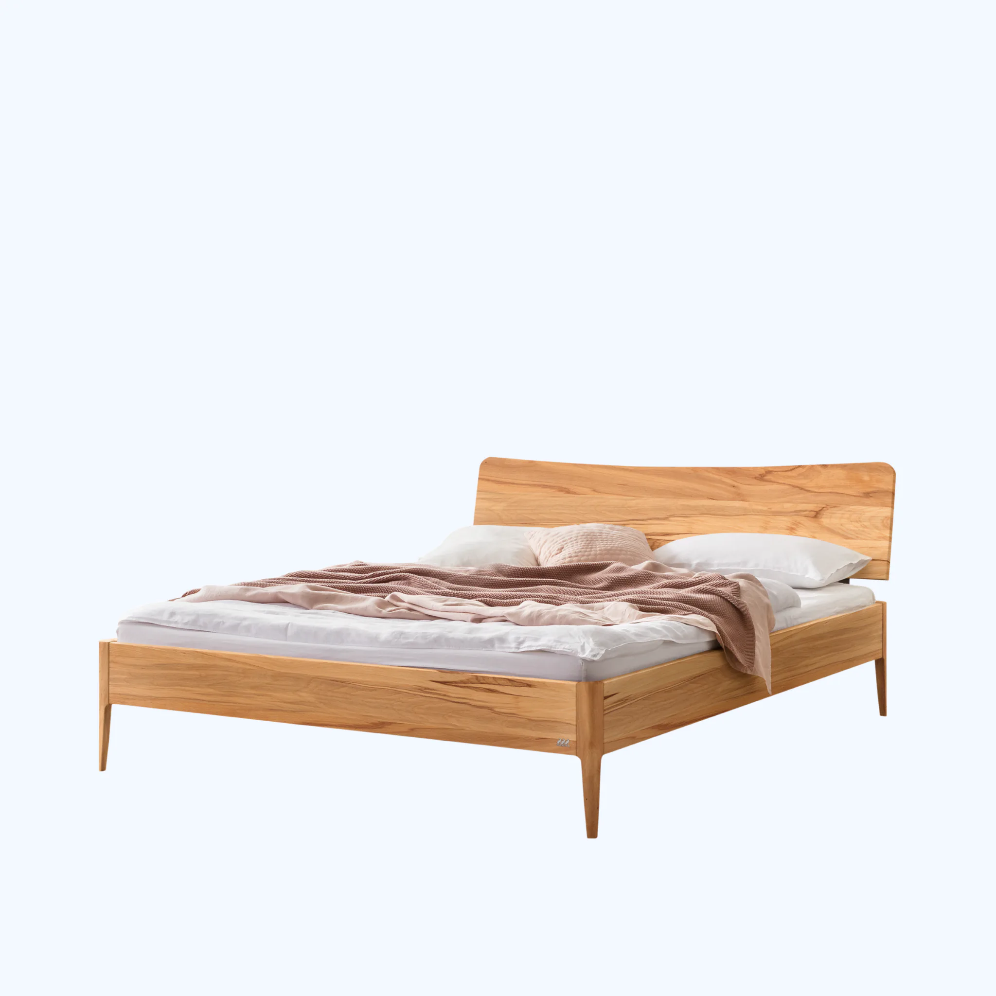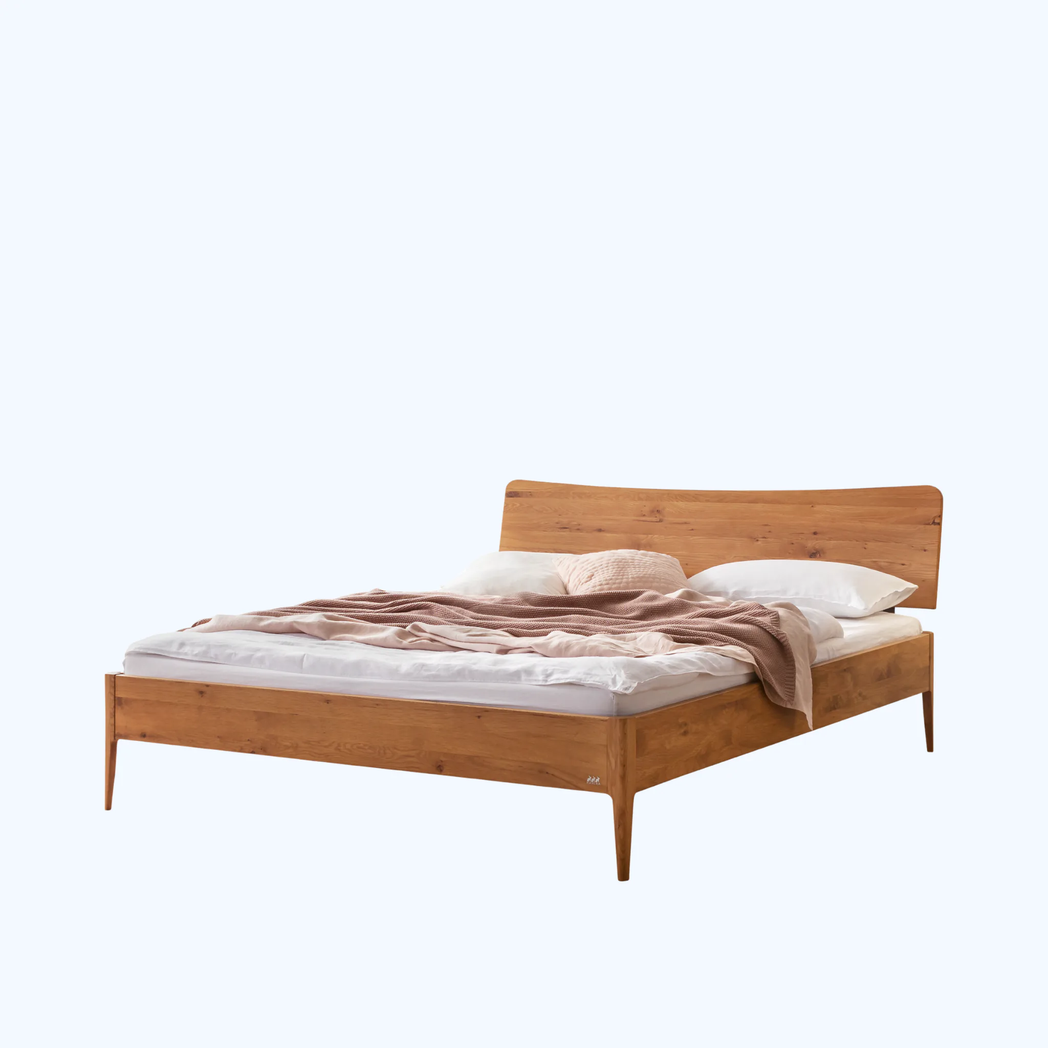 Hasena Spezia elegantes Massivholzbett mit gerundetem Holz-Kopfteil und stabilen konischen Füßen. Einlegetiefe ca. 18 cm. Erhältlich in 12 Größen und 5 Farben.