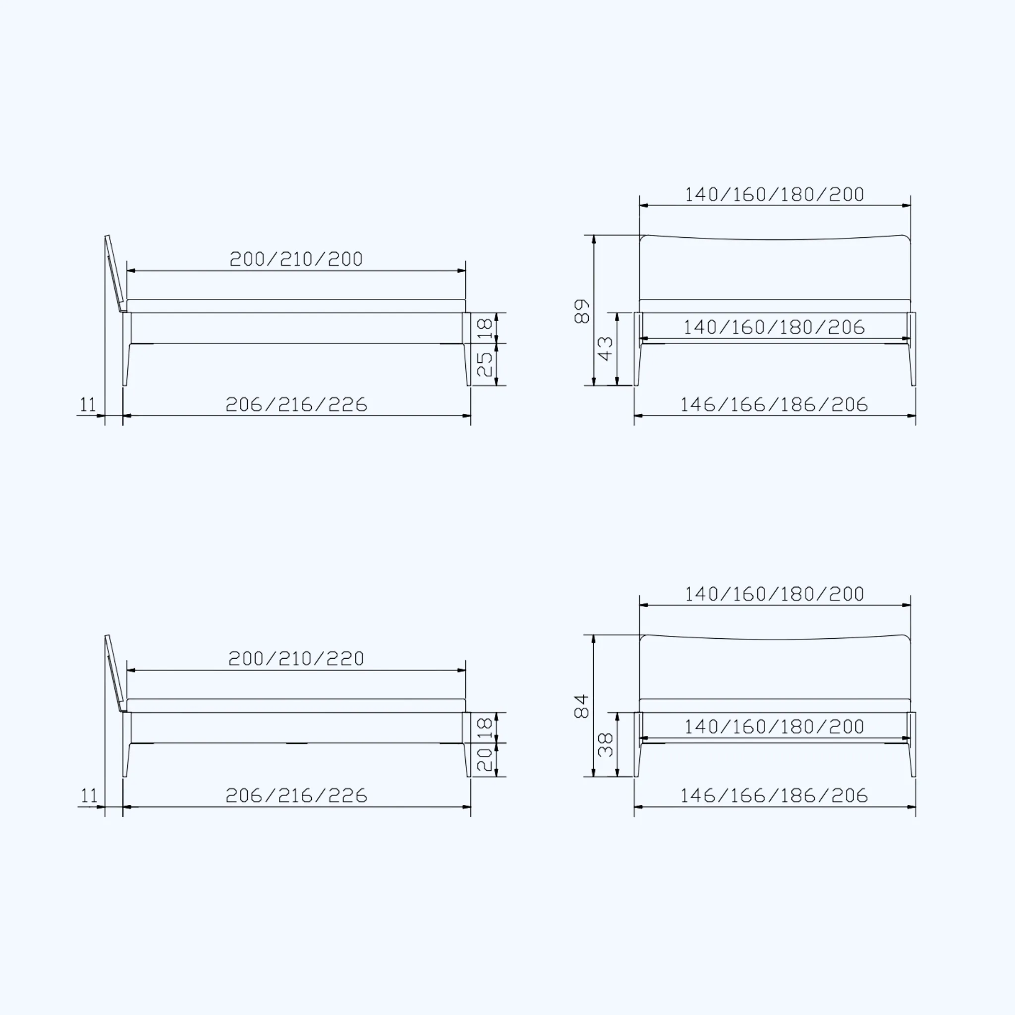| Liegefläche | 140×200 cm, 140×210 cm, 140×220 cm, 160×200 cm, 160×210 cm, 160×220 cm, 180×200 cm, 180×210 cm, 180×220 cm, 200×200 cm, 200×210 cm, 200×220 cm |