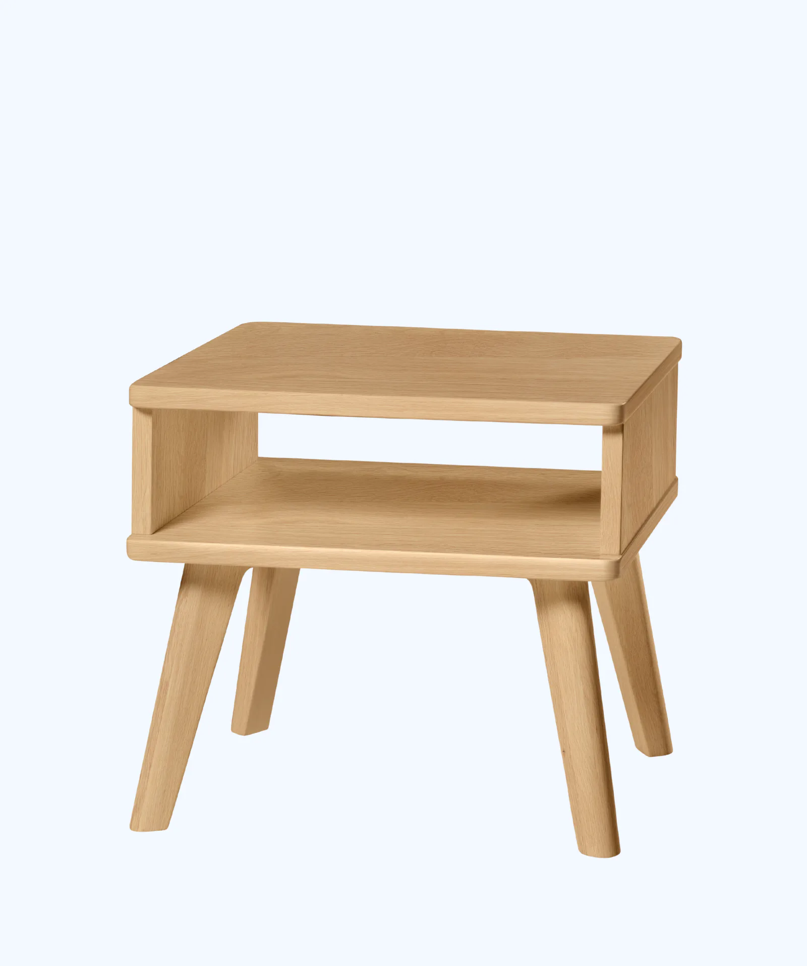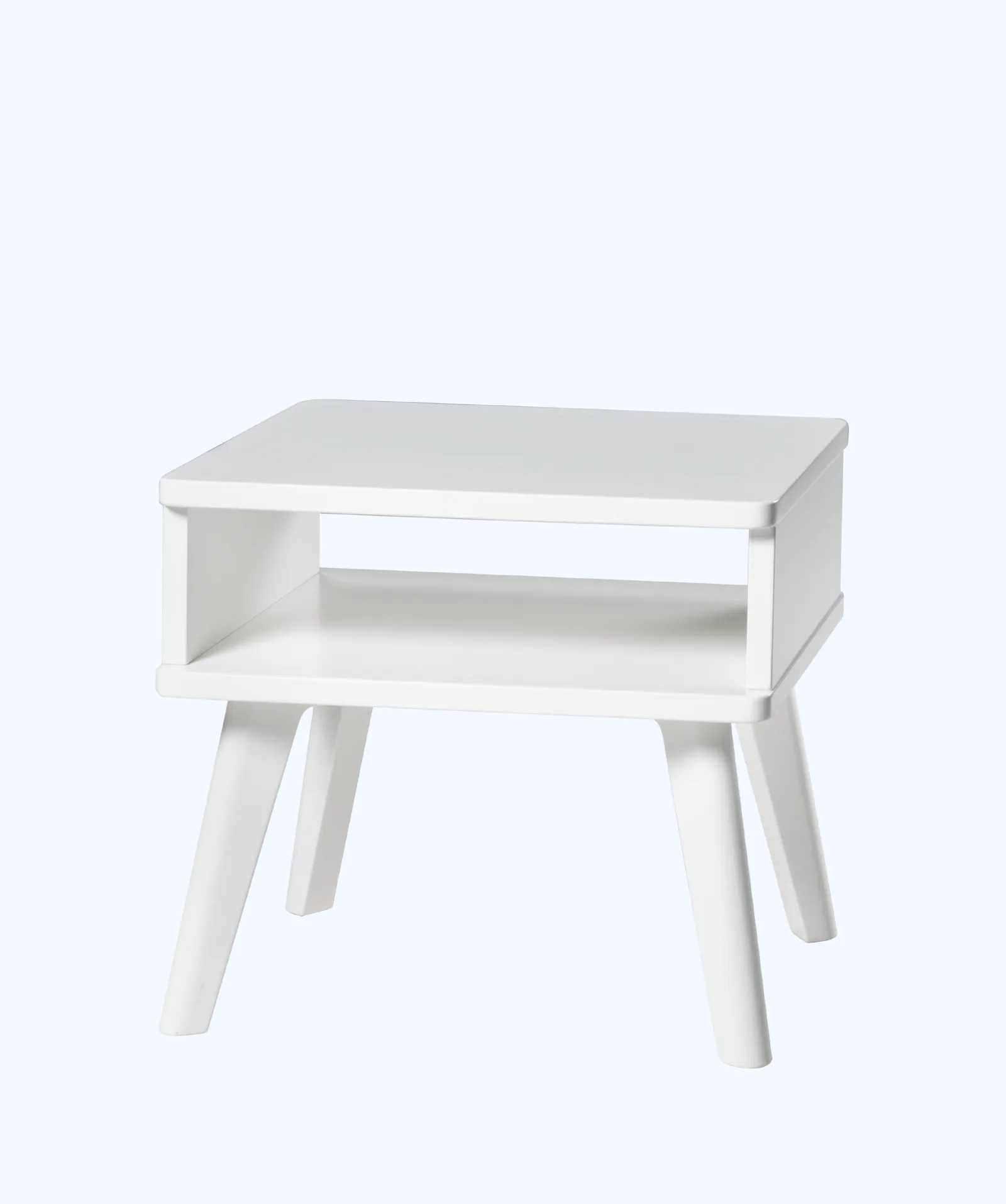 Zeitloser Nachttisch Stand im skandinavischen Look mit offener Ablage. Massivholz, zerlegt geliefert. Erhältlich in fünf Farben. Hasena Lounge Kollektion.