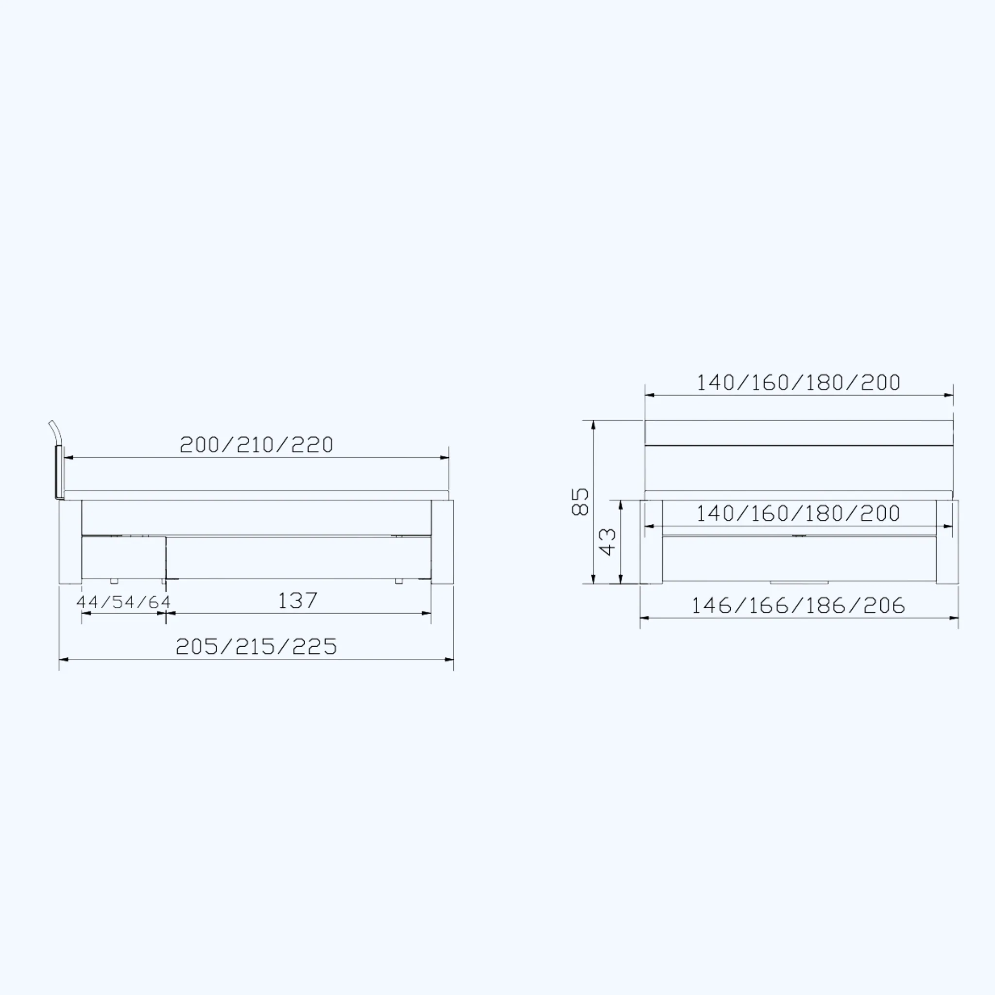 | Maße (Breite x Länge x Höhe) | 146x205x85 cm, 166x205x85 cm, 186x205x85 cm, 206x205x85 cm |