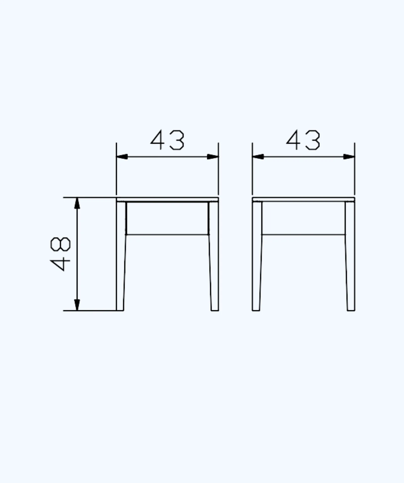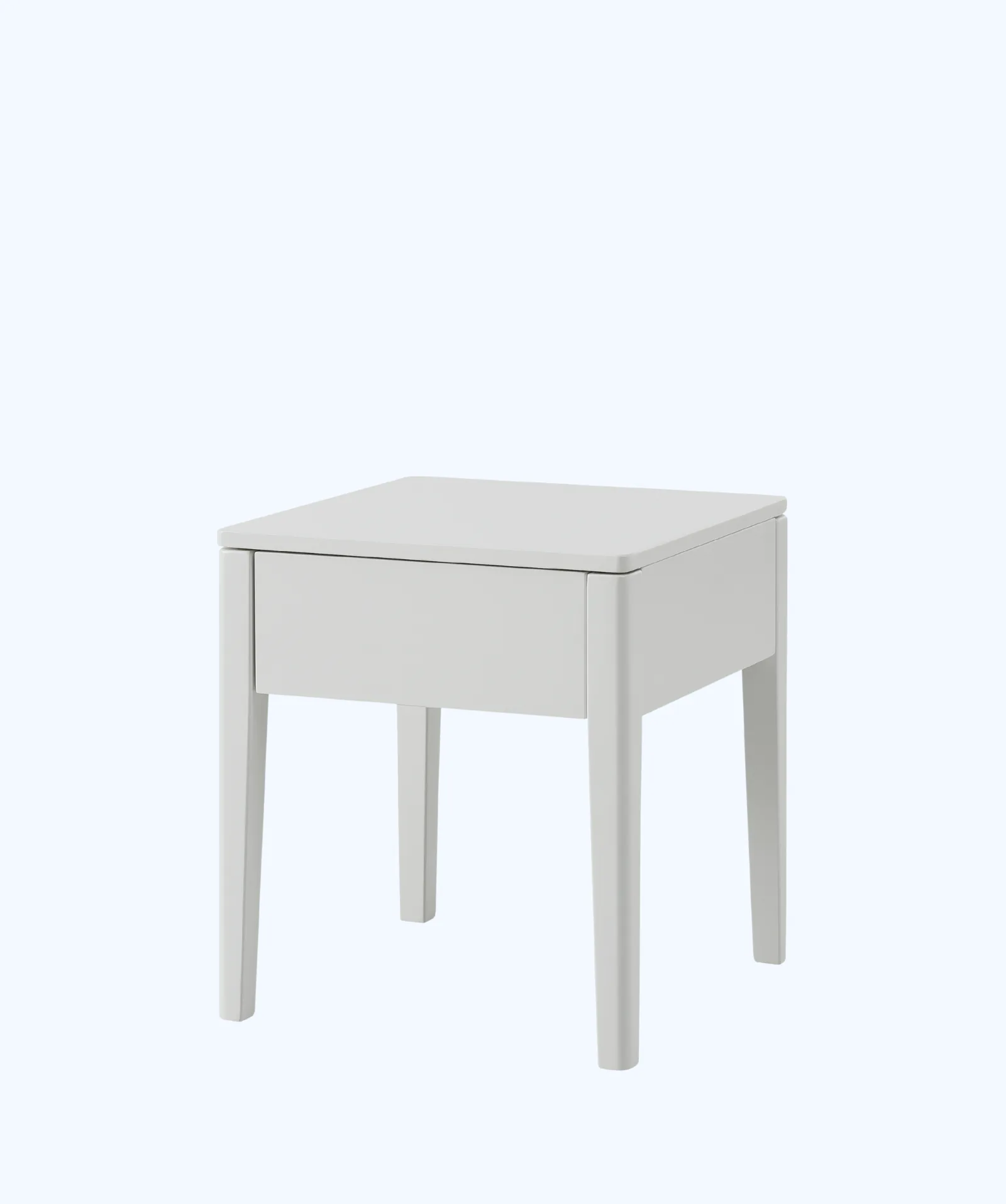 Durchdachter Nachttisch Styly skandinavisch: massives Hartholz in Möbelqualität, Schublade mit Stauraum. Maße 43×43×48 cm, montiert. Erhältlich in mehreren Farben.