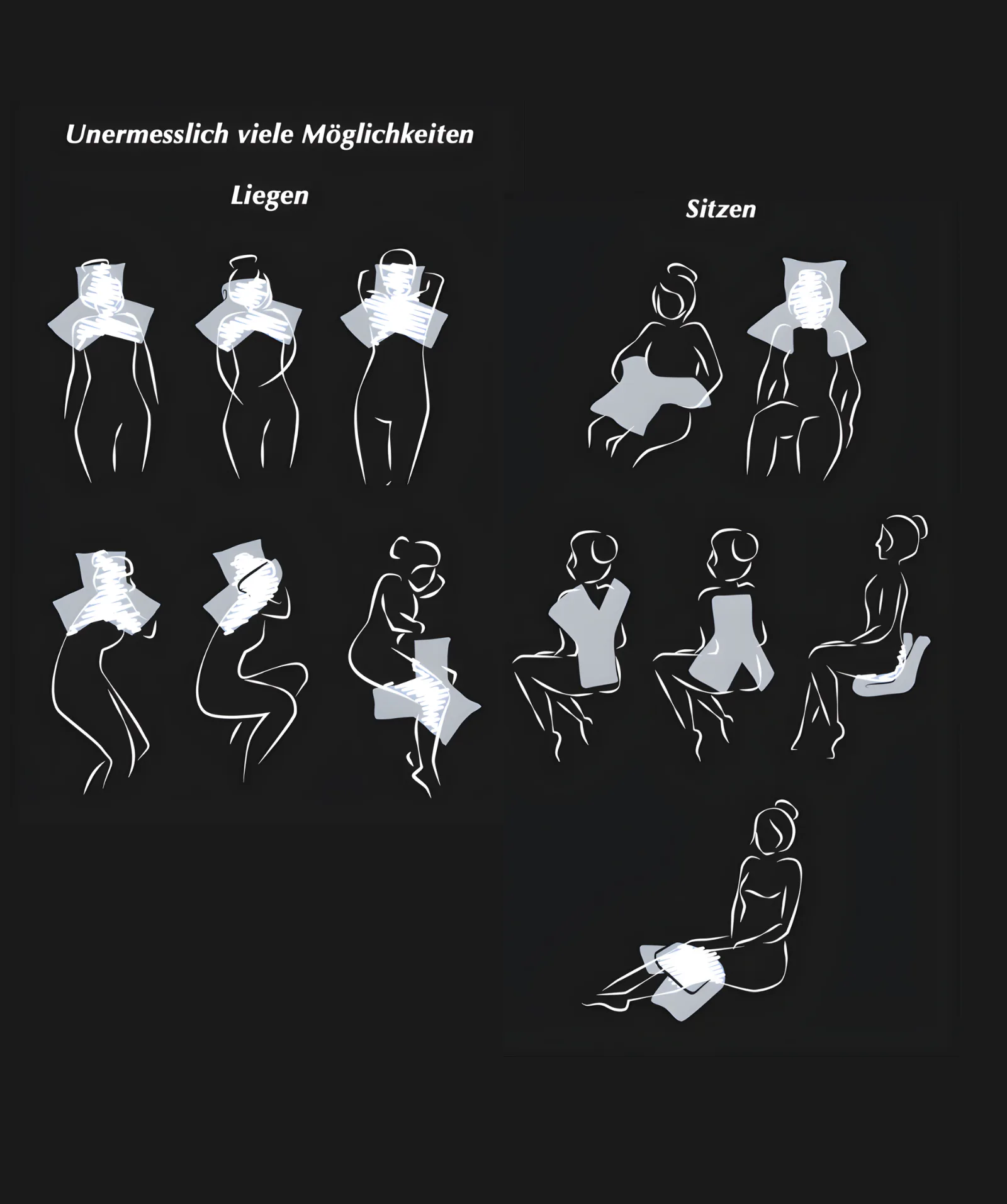 - Flexibel sitzen und liegen: Das Formkissen folgt Ihrer Position, sodass Sie lesen, entspannen und abends ruhiger einschlafen.